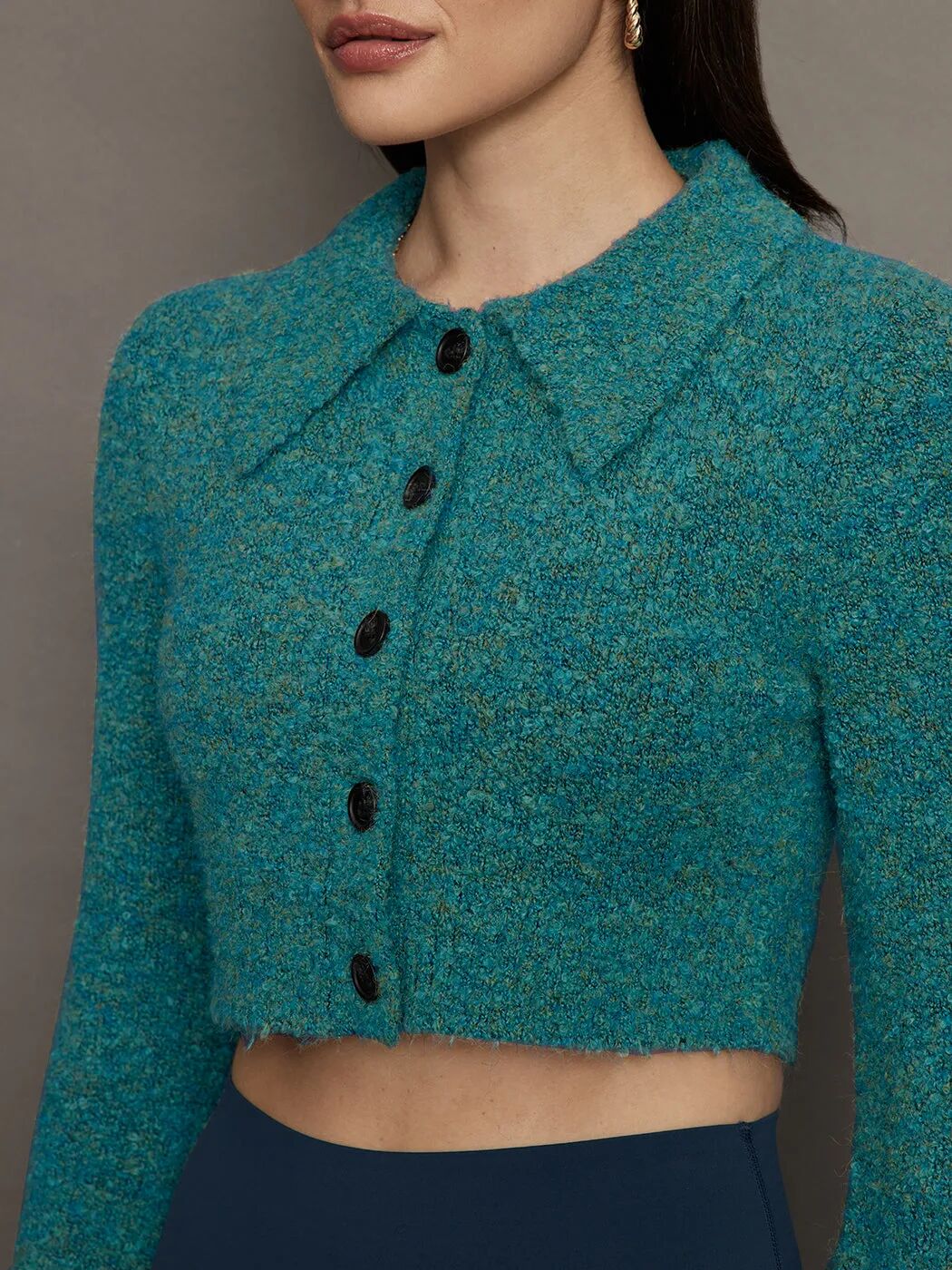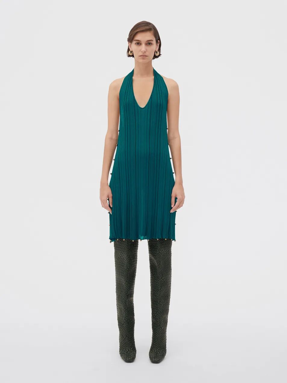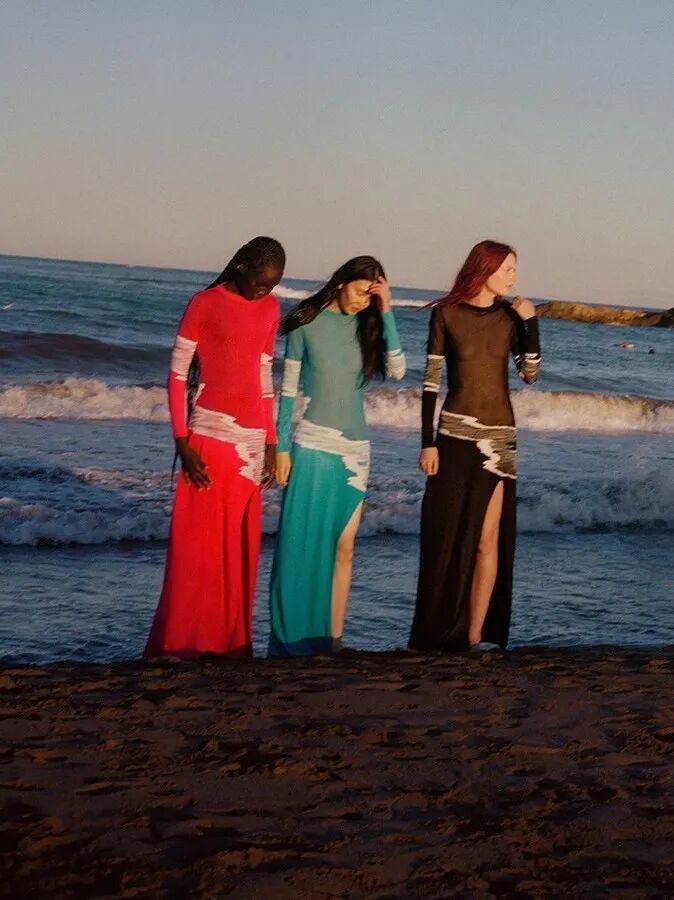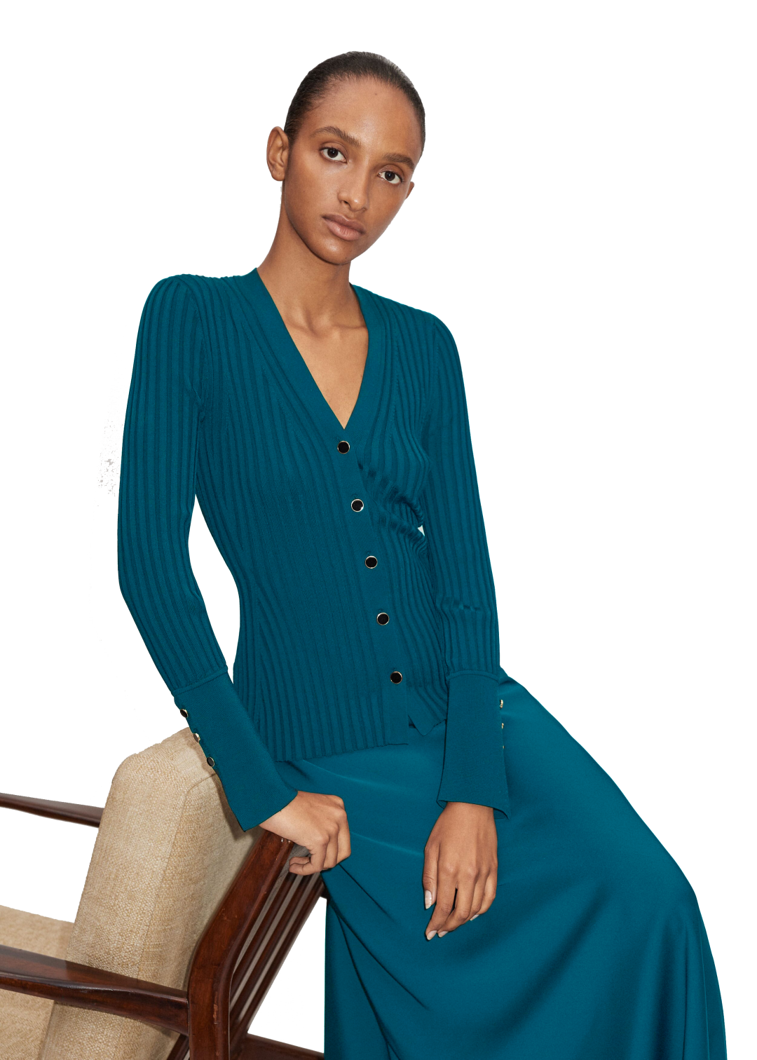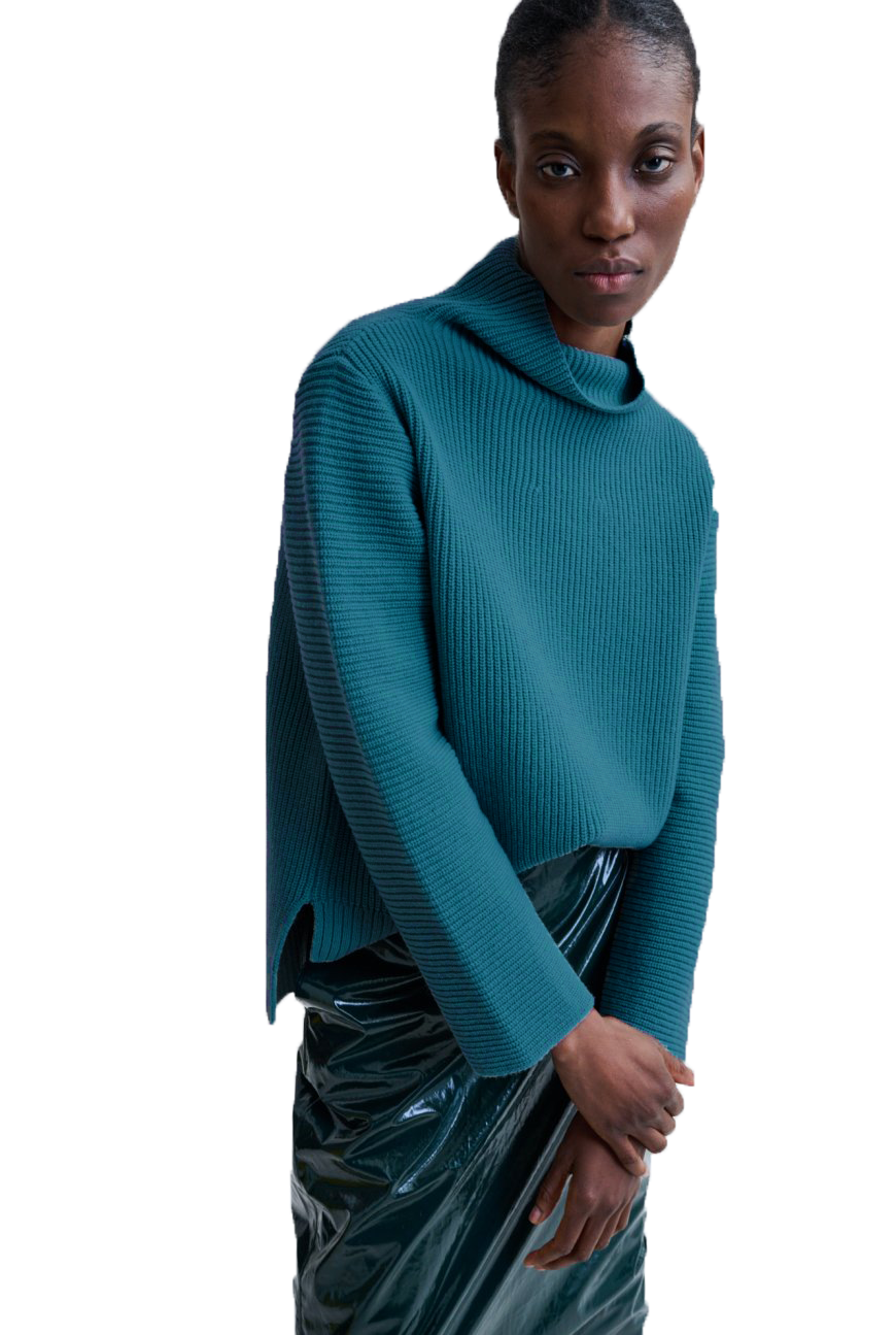 青礁绿是来源于大自然的颜色,具有较高的饱和度,运用在服装上可以给都市生活带来新的生机。作为在24春夏季颇具吸引力的色彩,青礁绿以精致造型展示其色彩魅力。下面小编就将以三大热门针织单品带你探索属于青绿礁的自然魅力~青礁绿的色彩气质非常适合运用在连衣裙的设计中来打造复古的精致美,可以非常好地诠释理性又浪漫的复古典雅气质。在青绿礁连衣裙的设计上可以重点关注坑条、移针、嵌花等针织组织带来的不同的质感表达。同色系菱形格,撞色、纯色抽条的设计在青礁绿的加持下展示出独特的魅力,复古氛围感油然而生。在做撞色设计时可以考虑同色系的搭配,或者小部位的点缀。青礁绿色彩在套衫中的运用也有很多的可能性,粗针撞色、立体肌理感、宽松的廓形都给予了青礁绿更多的设计思路。“碳循自然之美”中国服装绿色宣言暨零碳时尚发布正式启动