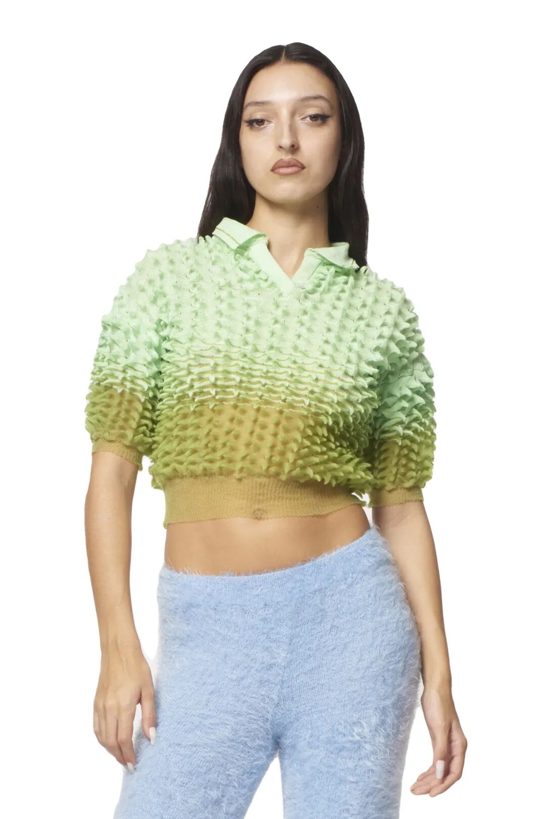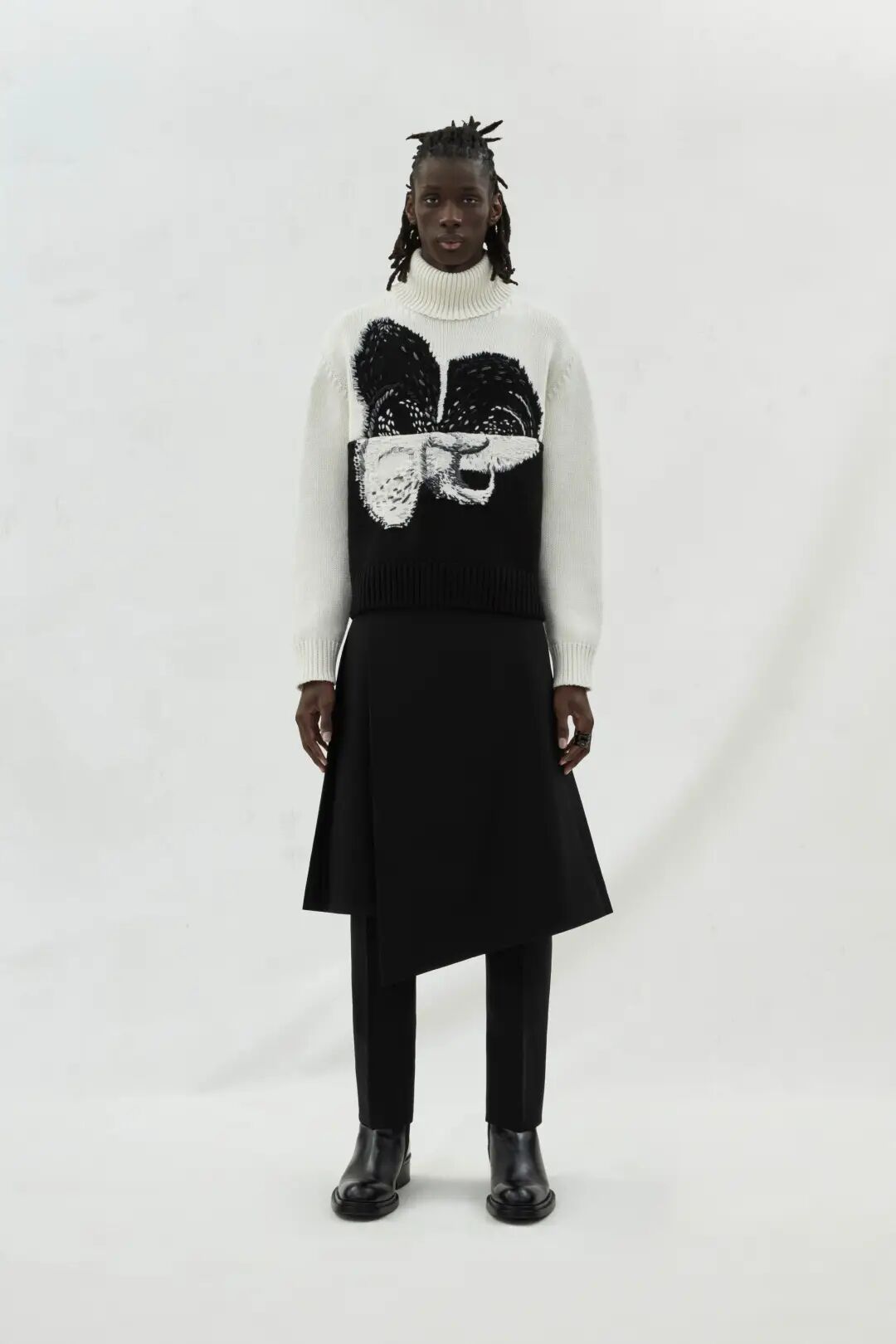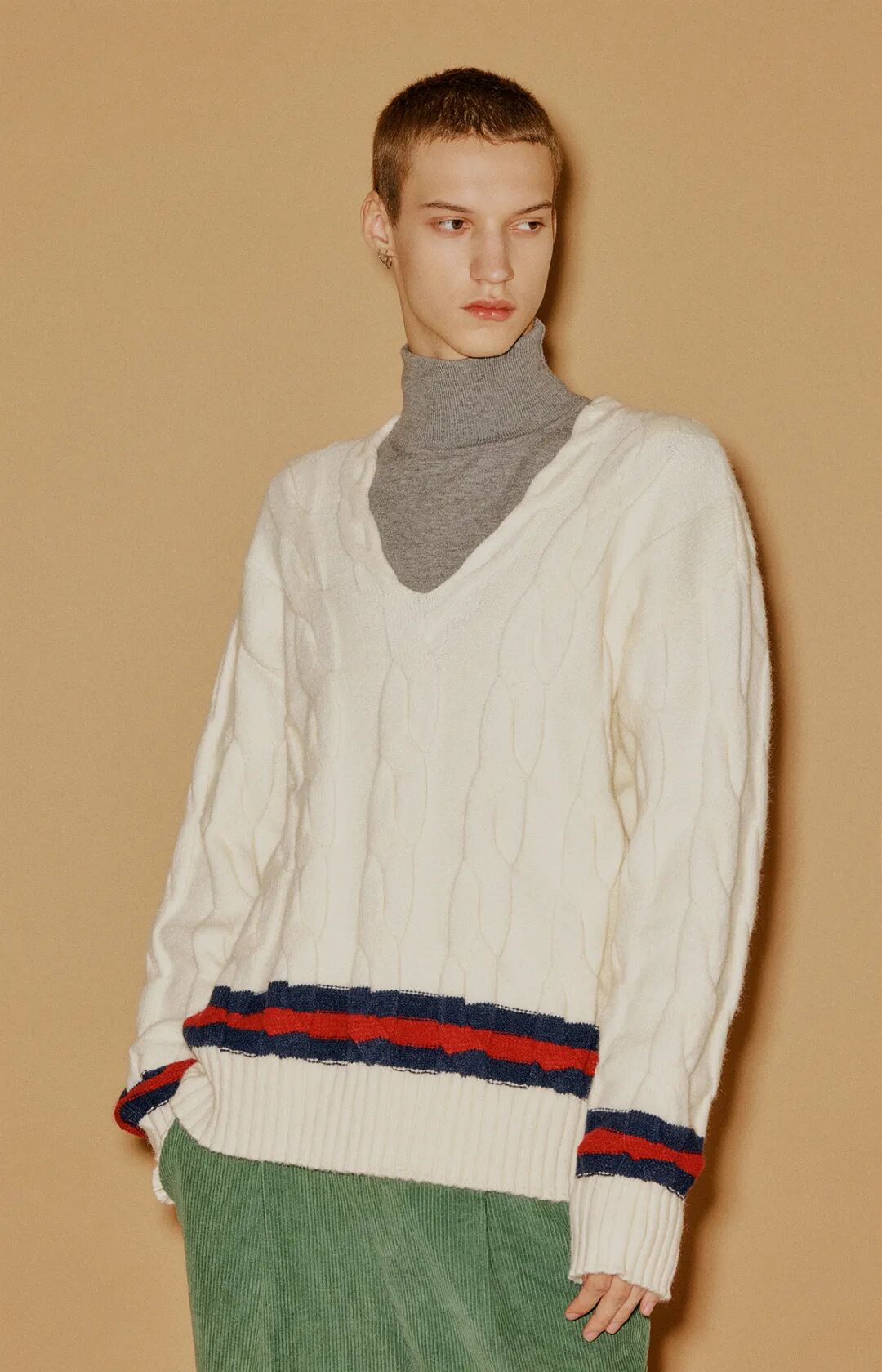 通过对基础版的套头衫进行结构的分割、纱线的组合以及不同工艺的运用就可以产生各种有趣的款式。你能在简单的纱线与配色中寻找到专属于针织组织的魅力,那些特有的卷边性、伸缩性、脱散性和多孔性都成为创意的出发点让服装变得更加有趣。