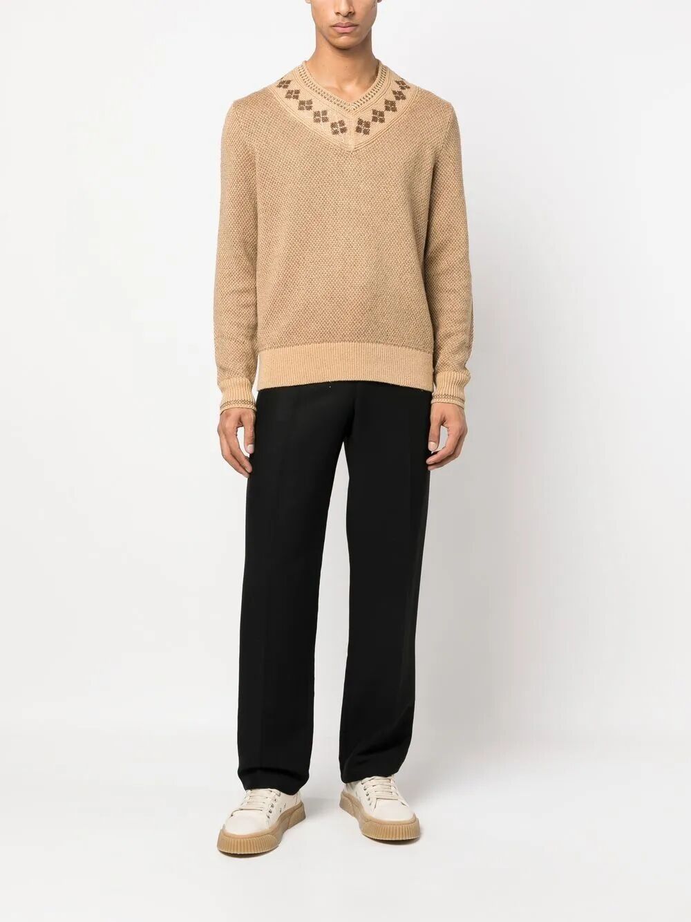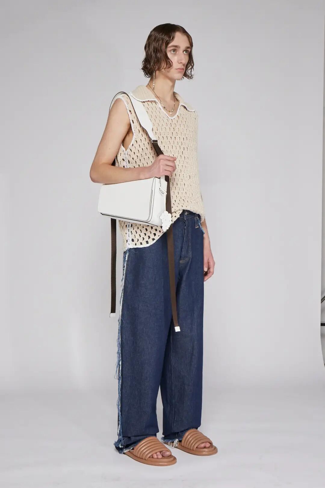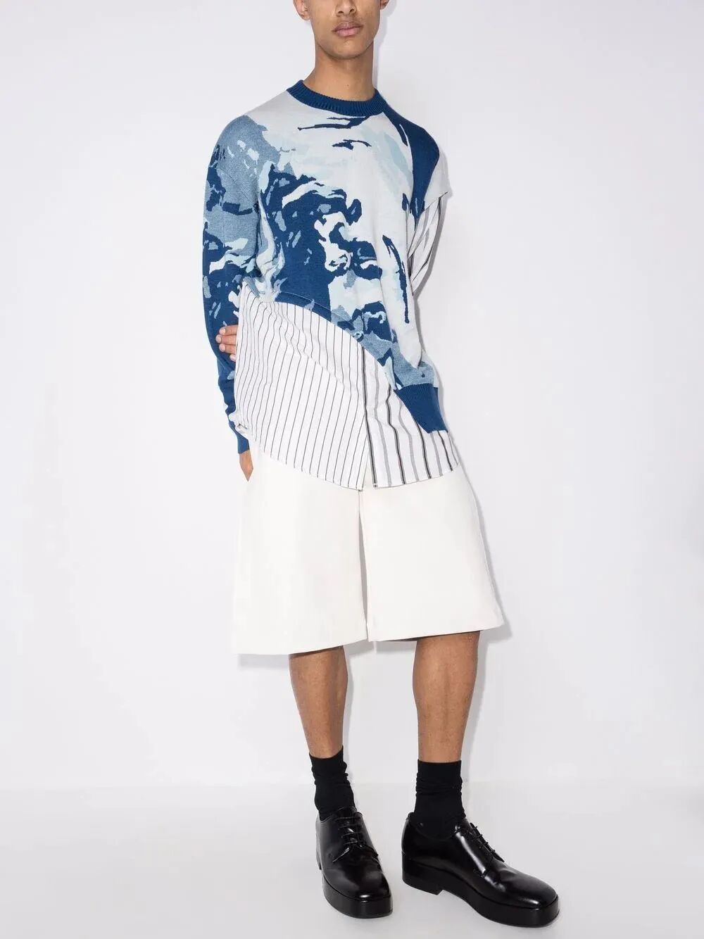 通过对基础版的套头衫进行结构的分割、纱线的组合以及不同工艺的运用就可以产生各种有趣的款式。你能在简单的纱线与配色中寻找到专属于针织组织的魅力,那些特有的卷边性、伸缩性、脱散性和多孔性都成为创意的出发点让服装变得更加有趣。