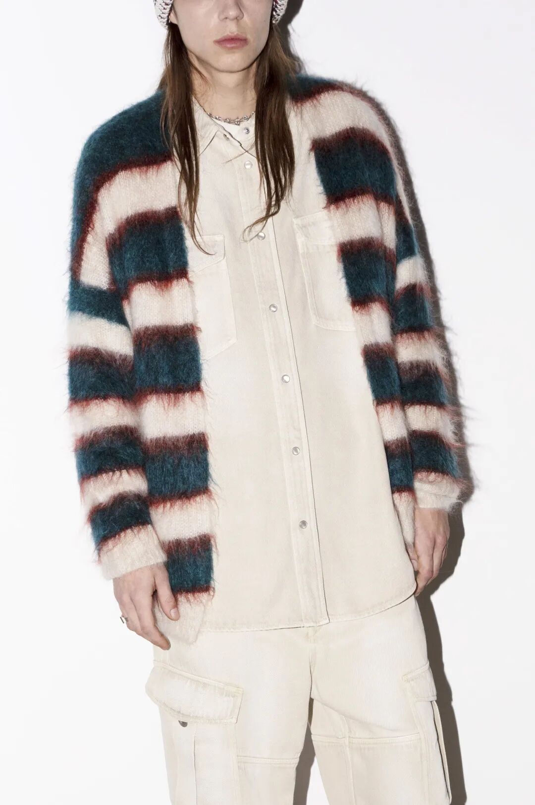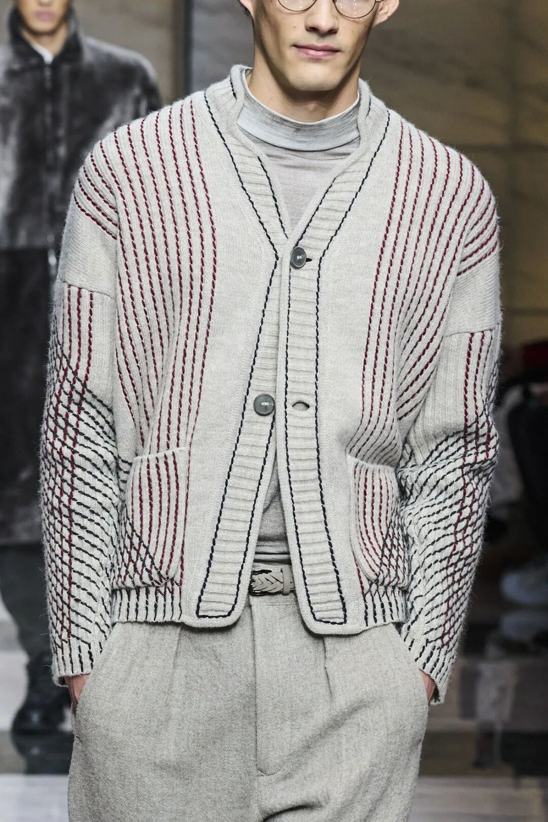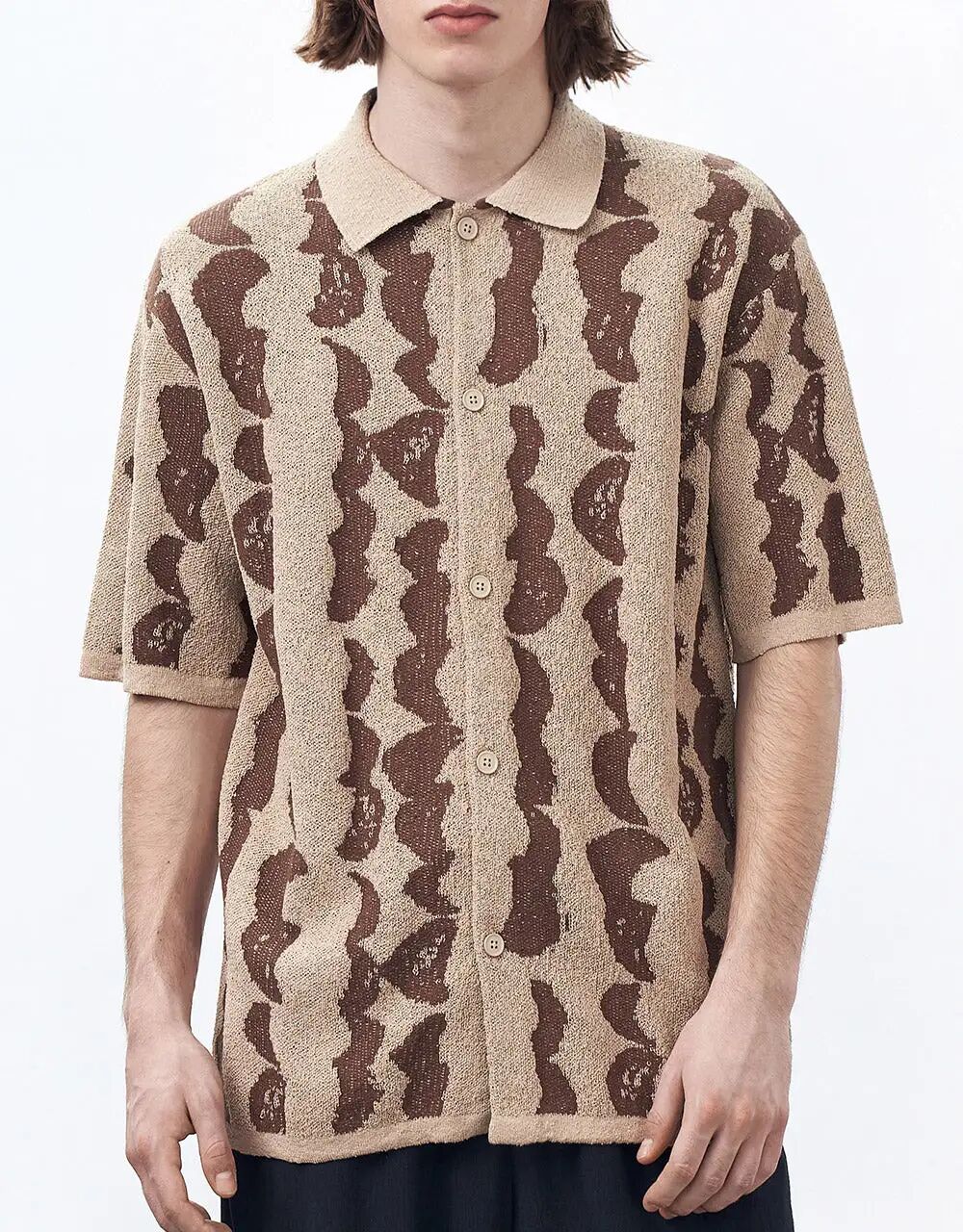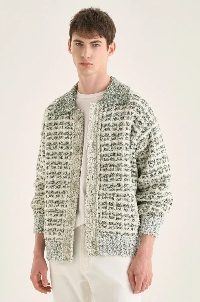 针织作为线圈圈套的艺术,散发着独特的魅力,只需两三种色彩的纱线就可以通过巧妙的图案设计和有趣的后整理工艺将创意放大。多变的图形与灵动的线条结合在一起让开衫迸发出别致新意。