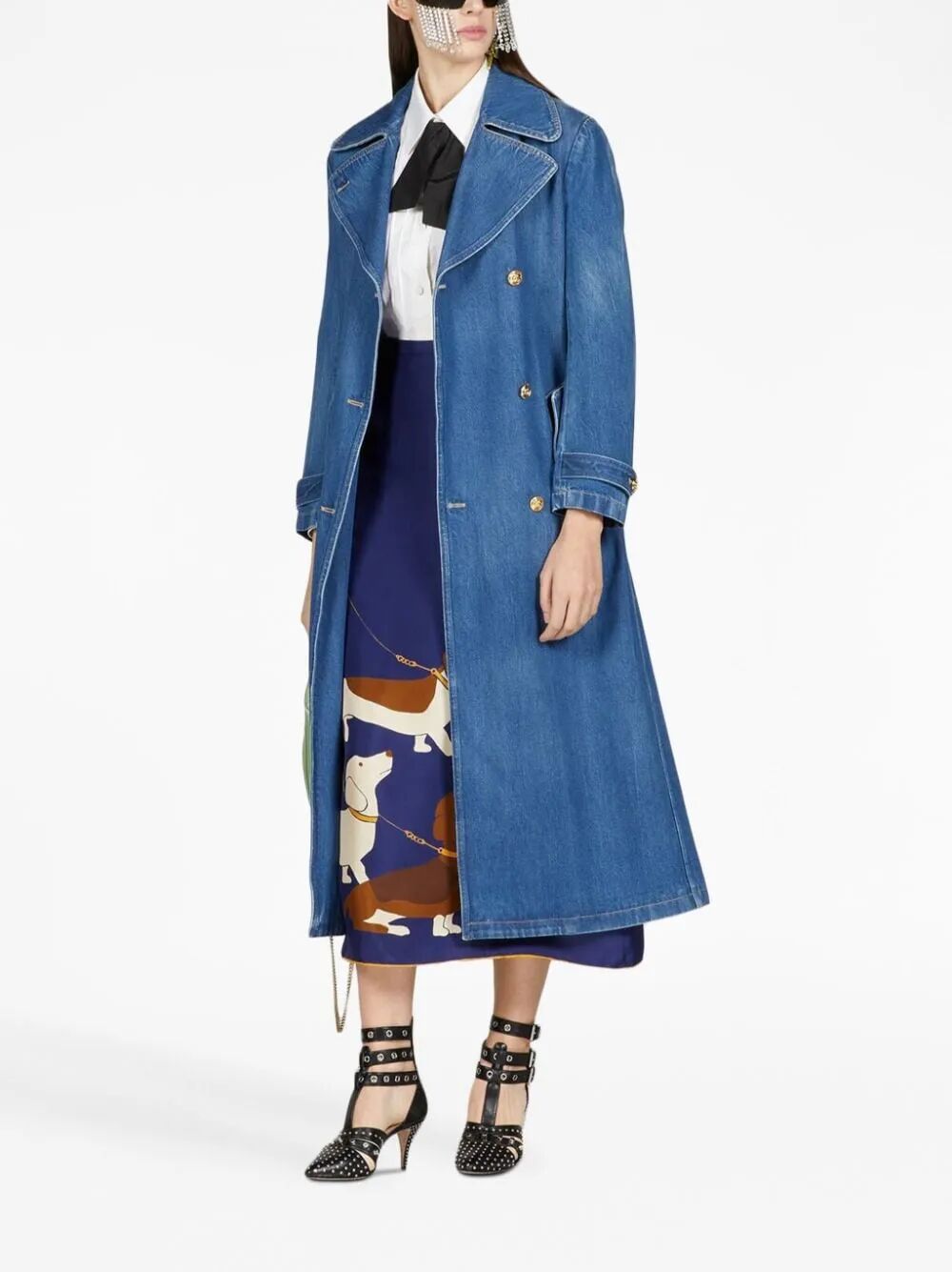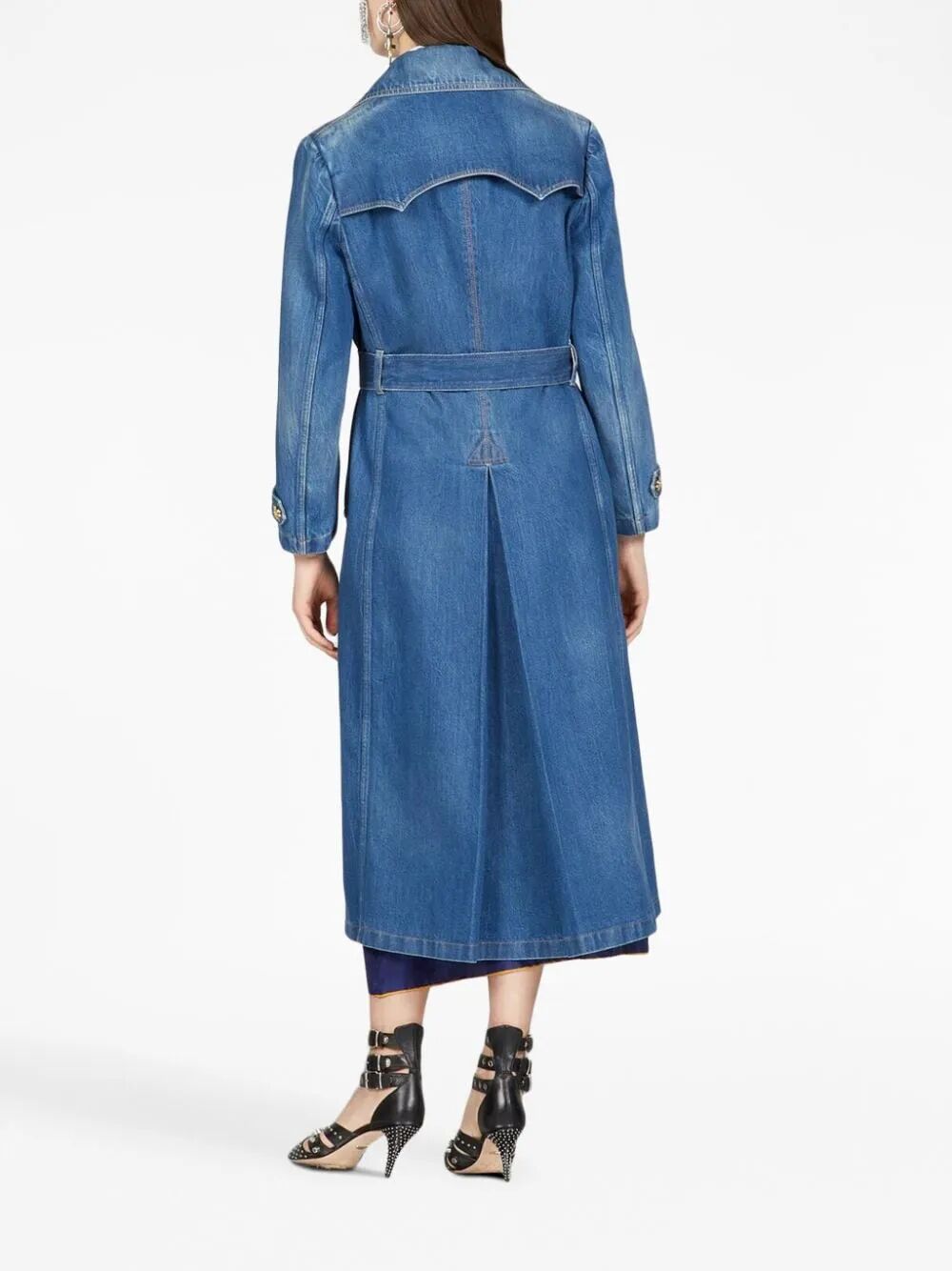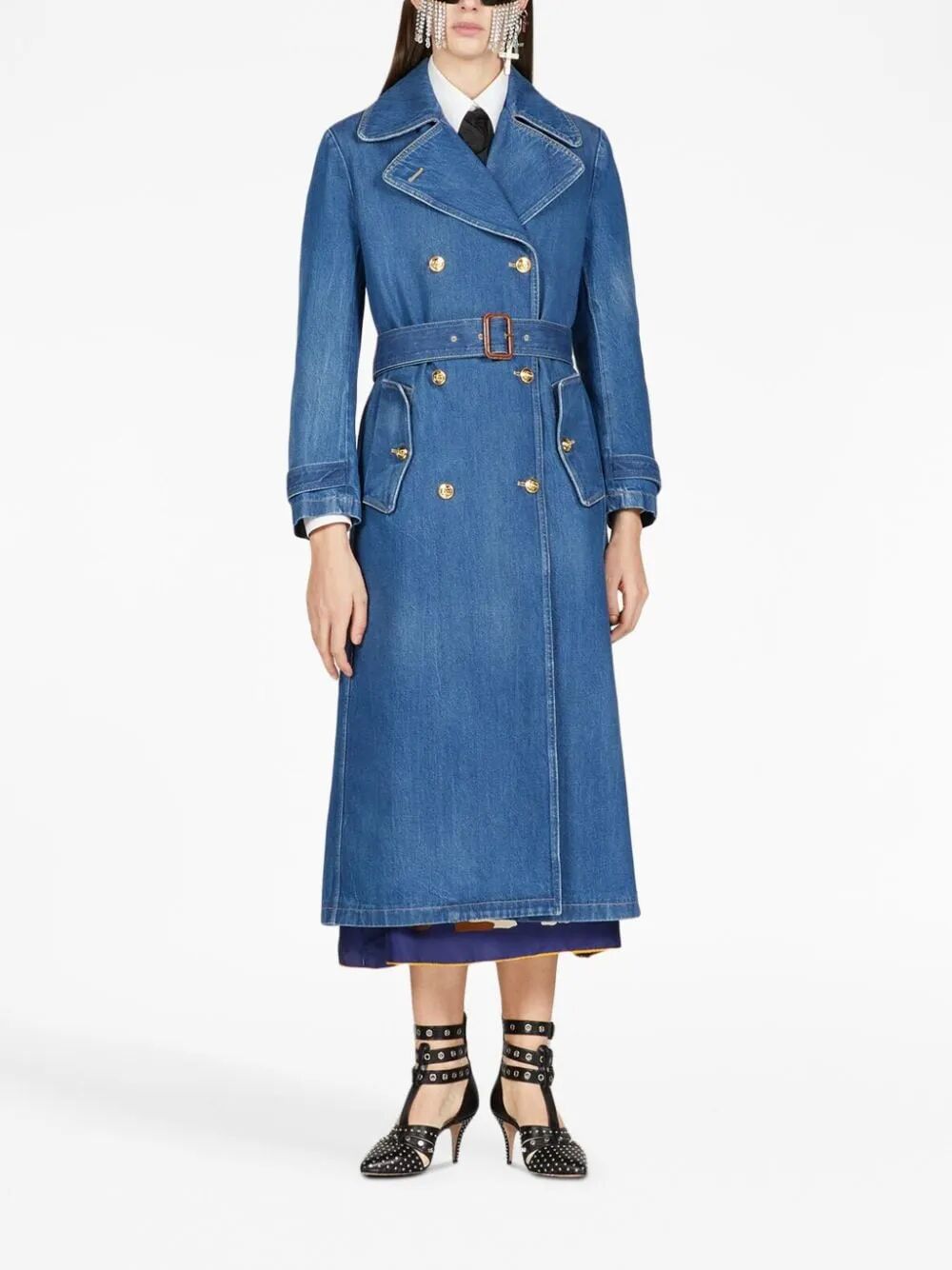 乔治·阿玛尼 (Giorgio Armani) 与 10 Corso Como 的全新合作设计了一款柔软的棉质牛仔风衣:单排扣款式,采用阳刚剪裁,肩部设计,宽缺口翻领,腰部系腰带,背面开衩,缀饰与皮革轮廓皮革颜色。