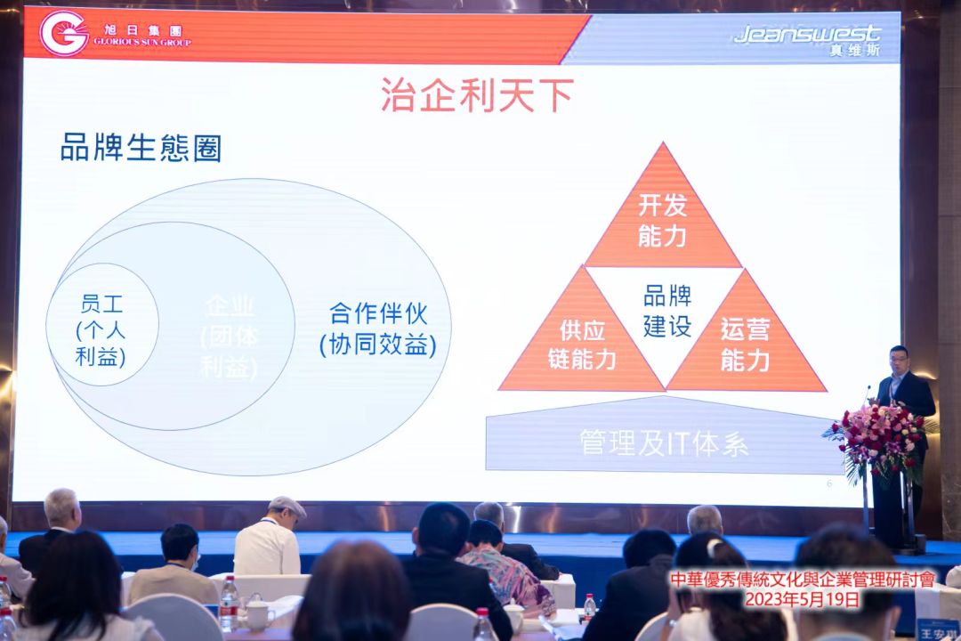 5月19日,“中华优秀传统文化与企业管理研讨会”在广东惠州圆满举行,会议由国际儒学联合会主办,中国服装协会副会长单位——真维斯国际(香港)有限公司母公司香港旭日集团、惠州市外商投资企业协会、惠州市企业联合会、惠州市企业家协会共同承办。