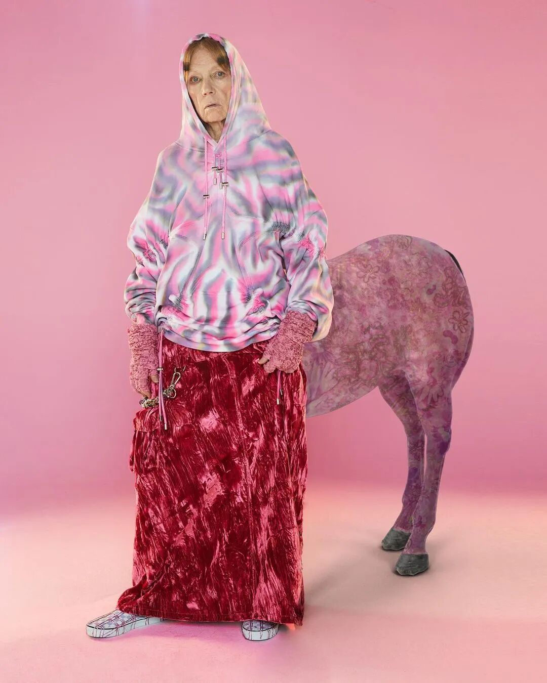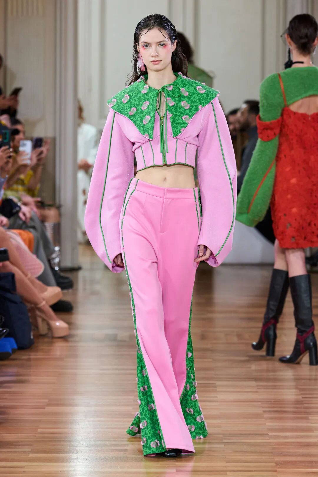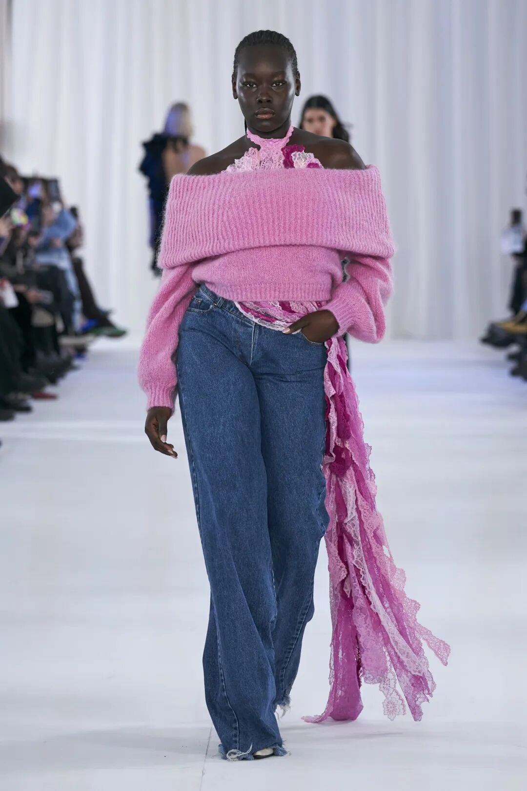 翻糖粉凭借其性别包容属性,已成为年轻品类的关键趋势,预计该色调将通过连衣裙和西装,以更大的规模进入高端市场。极具视觉冲击力的全身造型将扩大营销影响力。