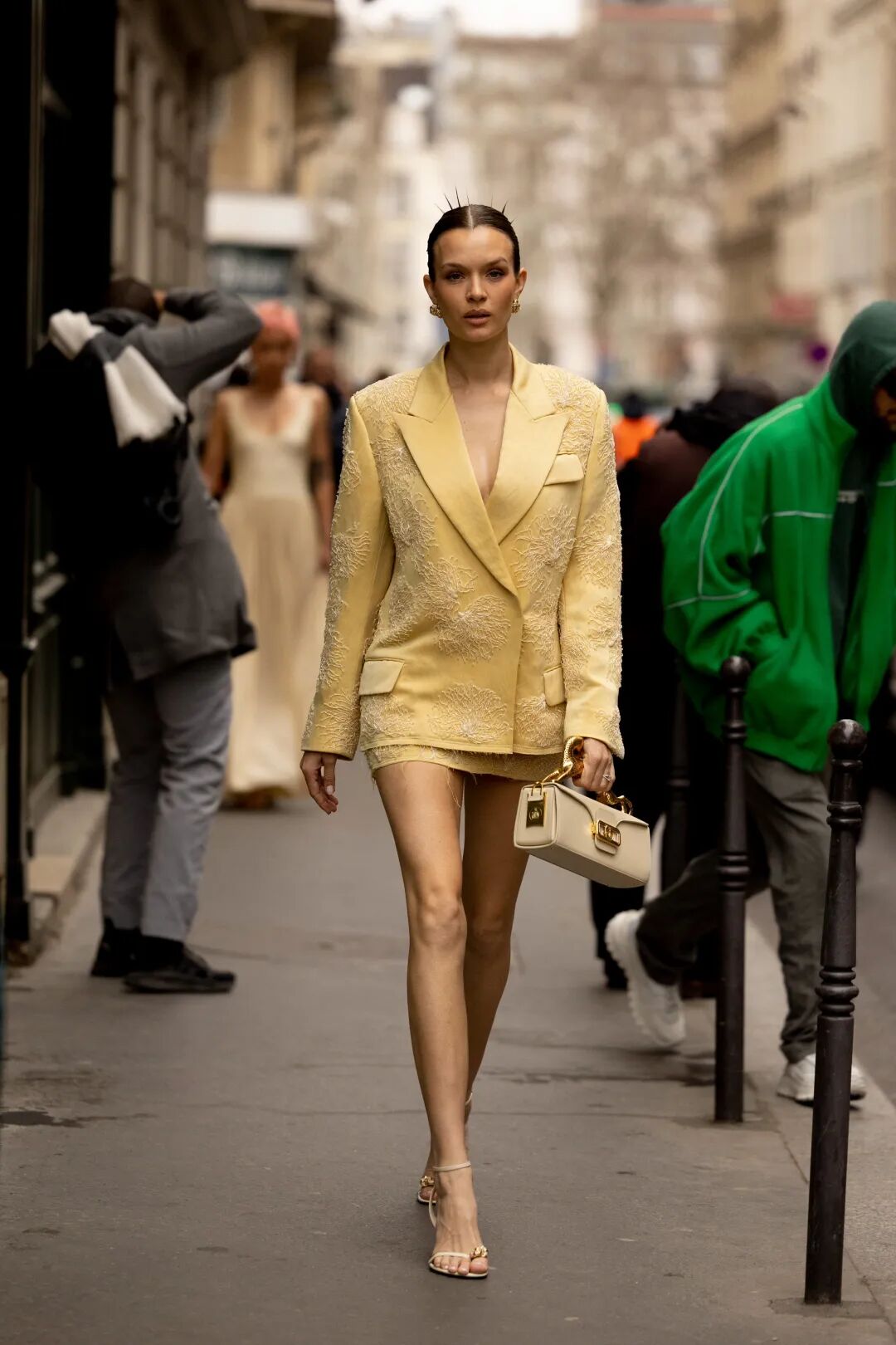 该色彩凭借其性别包容吸引力,已在年轻领域广受关注,高端品牌将其用于礼服单品,为该季增添乐趣和活力。简约廓形是该色调的首选,以简约个性凸显极简/极繁美学。