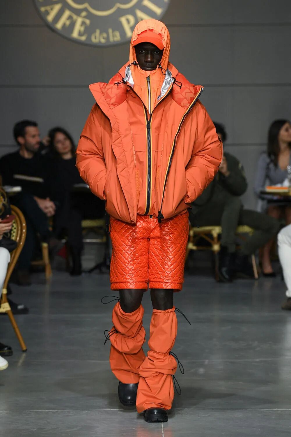 原野主题下男装强调户外运动着装的性能,新兴科技材质结合轻量化款式风貌,融合户外活动需求带来全天候户外造型风貌。以户外自然质感的无彩色系为主同时结合活力亮彩色系。功能化材质与实用设计相结合,满足户外肆意野行时的活动需求。