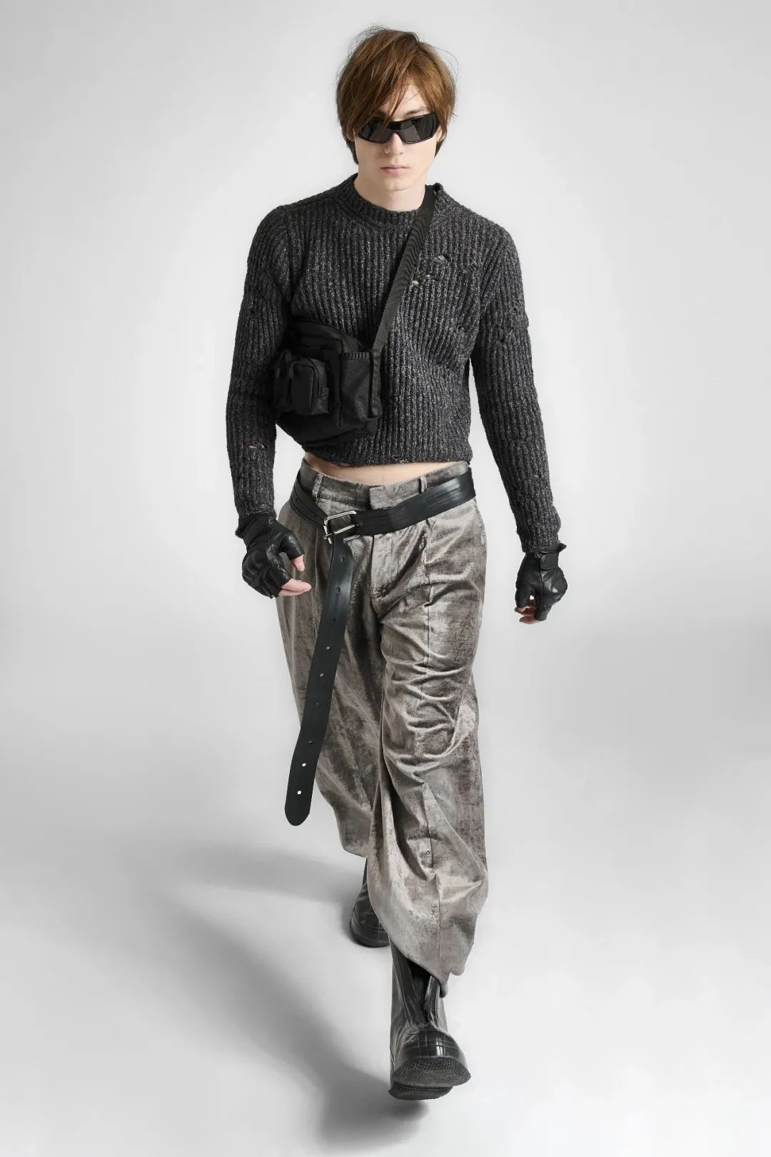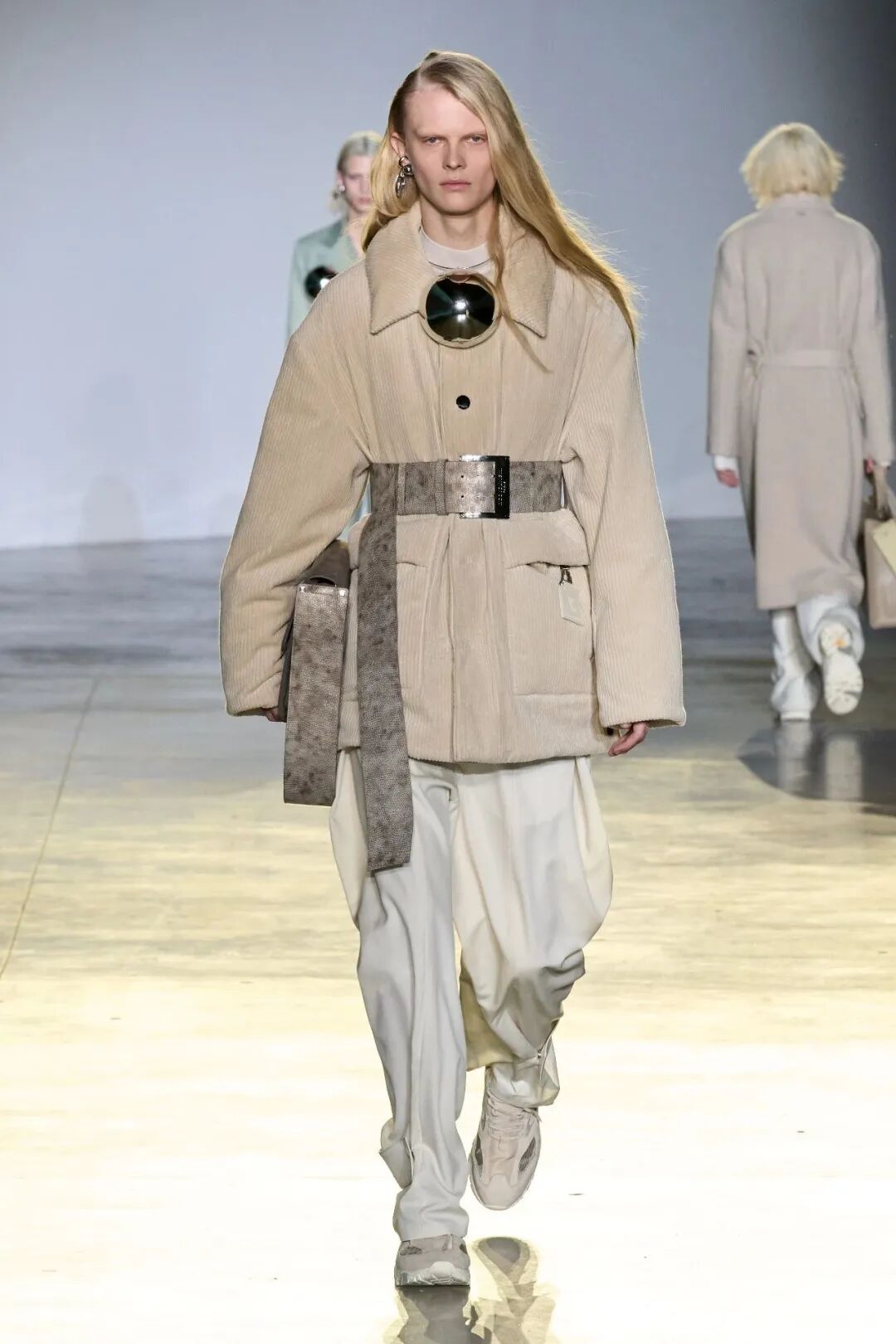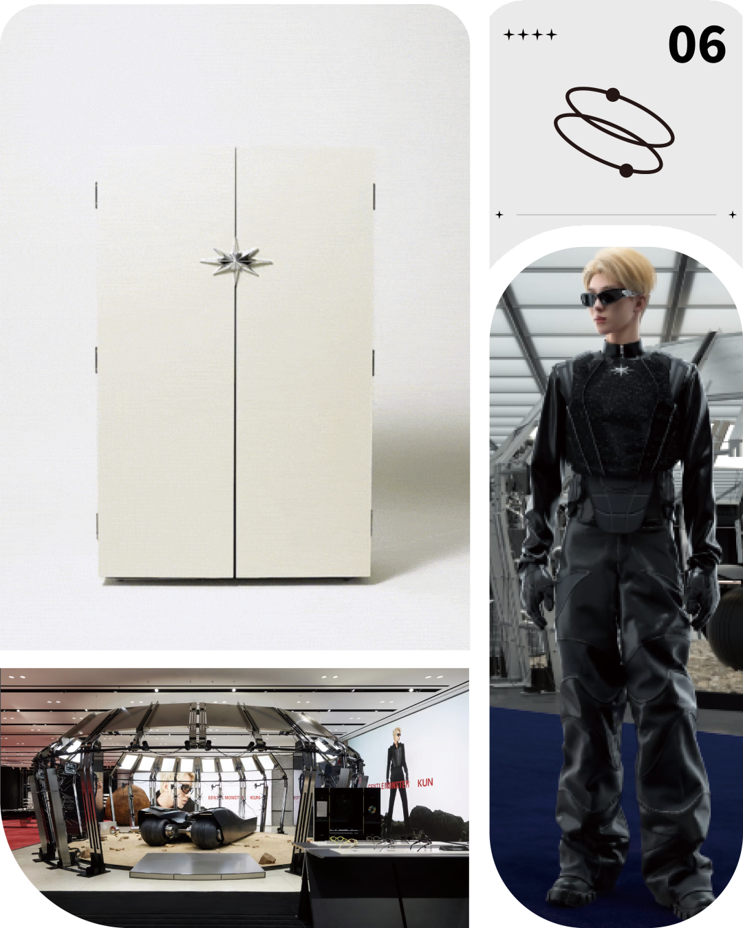 星纪元主题下男装设计,前卫、独特、多元、有趣的时尚理念。它带给消费者全新的时尚视角和体验,同时也为设计师提供了挑战自我、创新突破的机会。这种设计和创作的精神无疑将会为时尚界带来源源不断的创意和魅力。仿佛一个未来战士的降临。