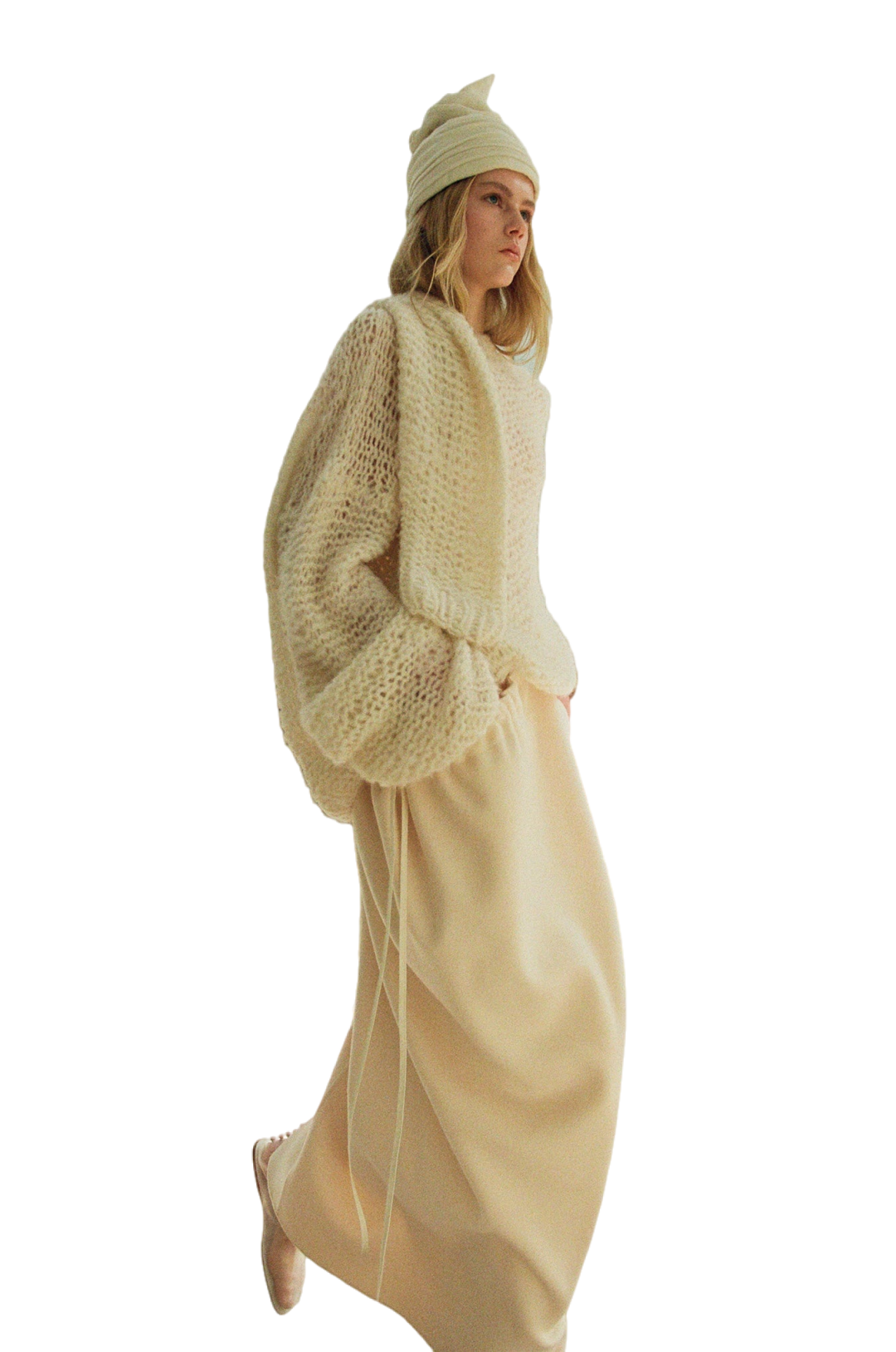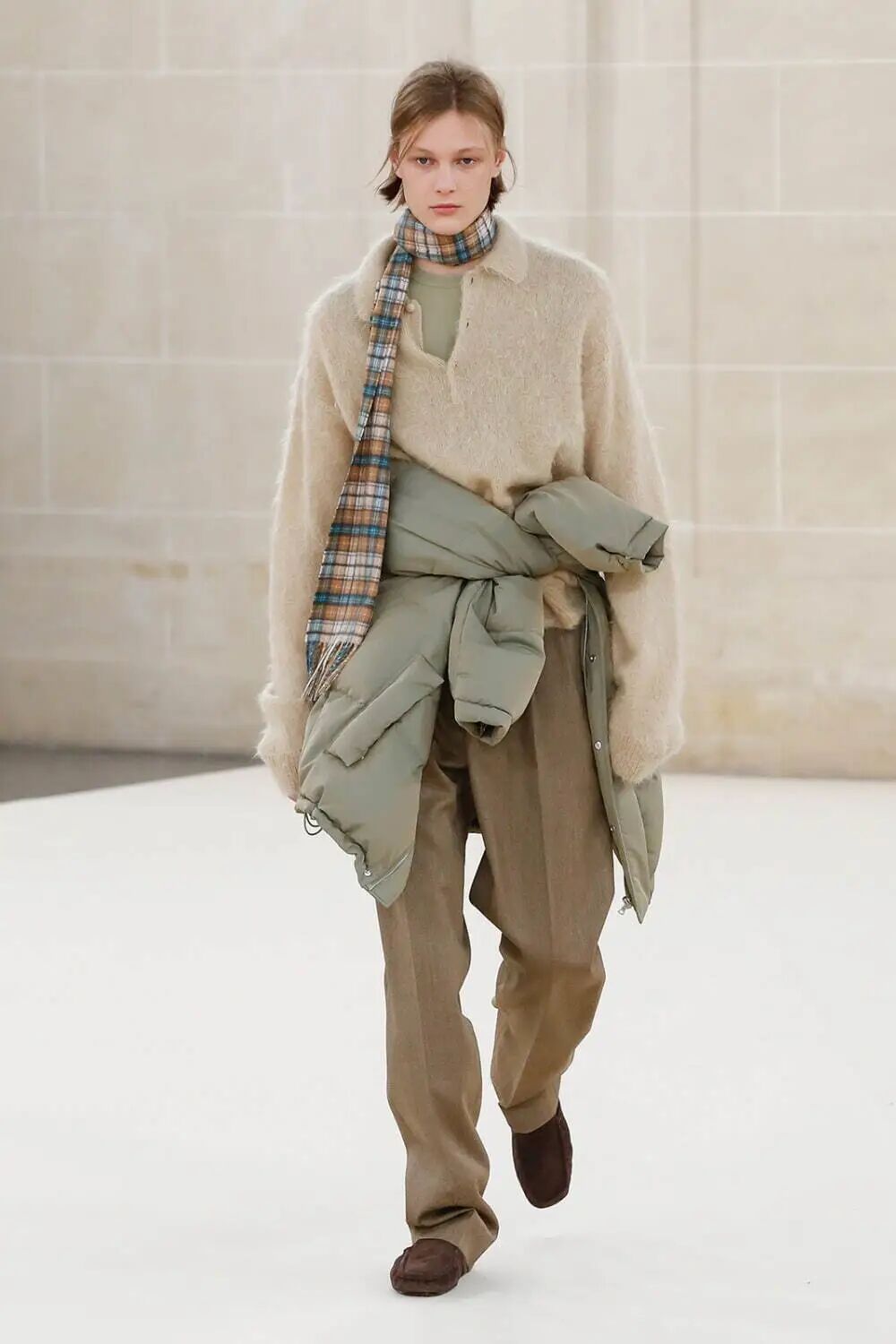 “我一直着迷于探索——如何平衡浮华表象与深度思考”,本主题以回归生活本质为核心,由此引申出了日常生活、旅途观景中细枝末节的内敛之美。通过对材质和细节的精工细琢,以及「动态的工艺」和「安静的力量」所传达出的理念,引发出对于美与舒适度关系的思考,从而进一步探讨时装与人的关系。