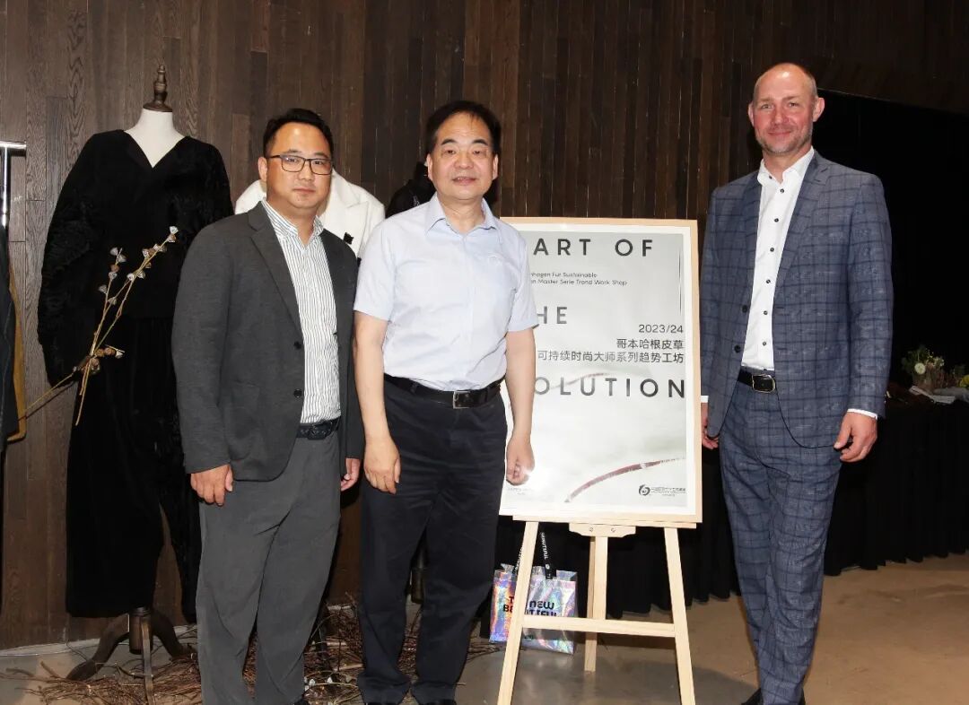 从左至右分别为:崔溢云(哥本哈根皮草中国区总裁)、卡思博(哥本哈根皮草全球销售副总裁)、周一奇(中国服装协会专职副会长)