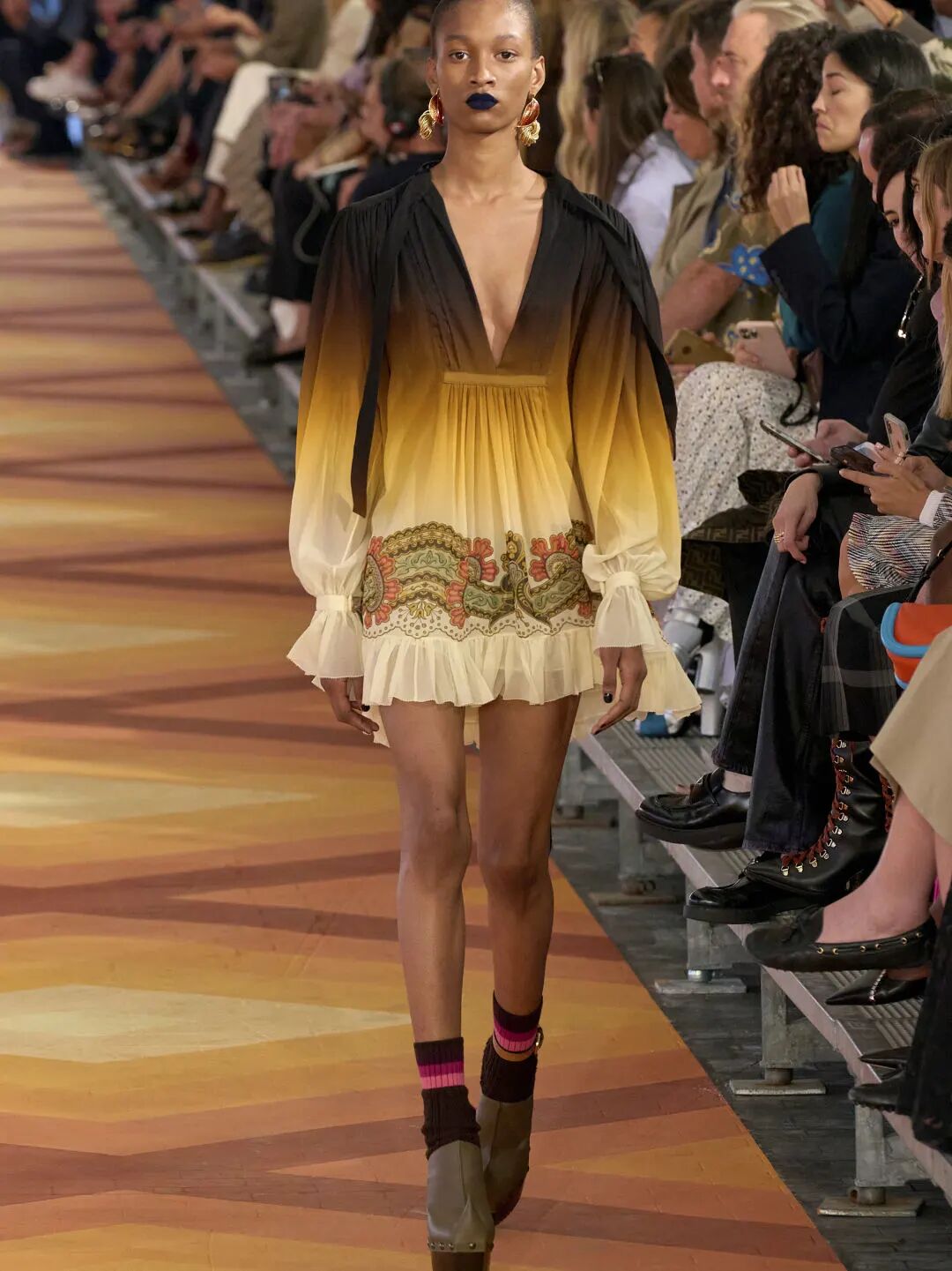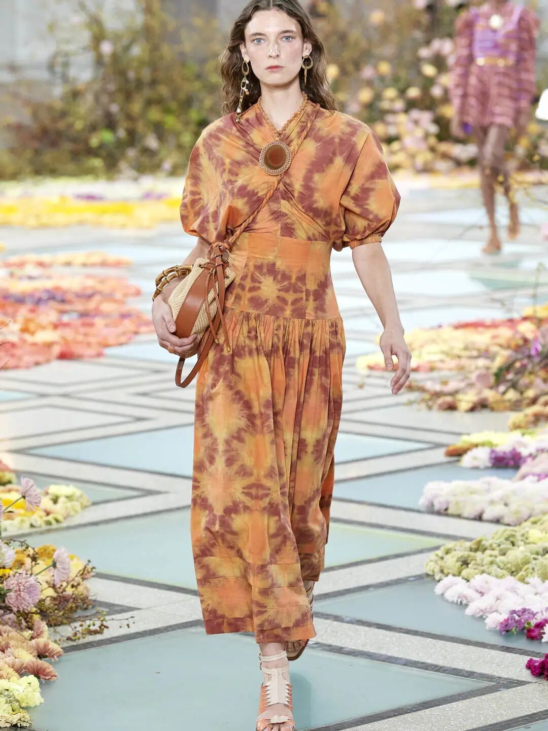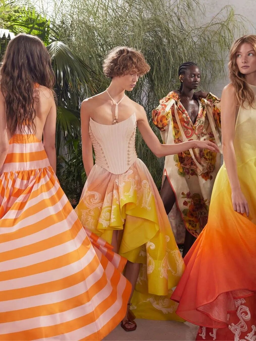 独特之处:2023春夏女装T台涌现舒适夏季造型,品牌使用了暖色调、奢华渐变色、绞染、水彩色印花。