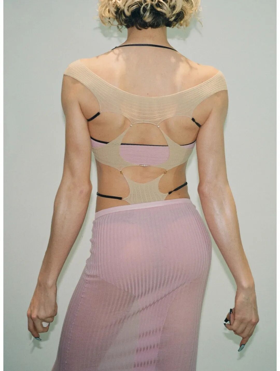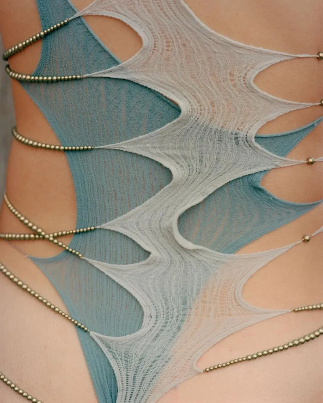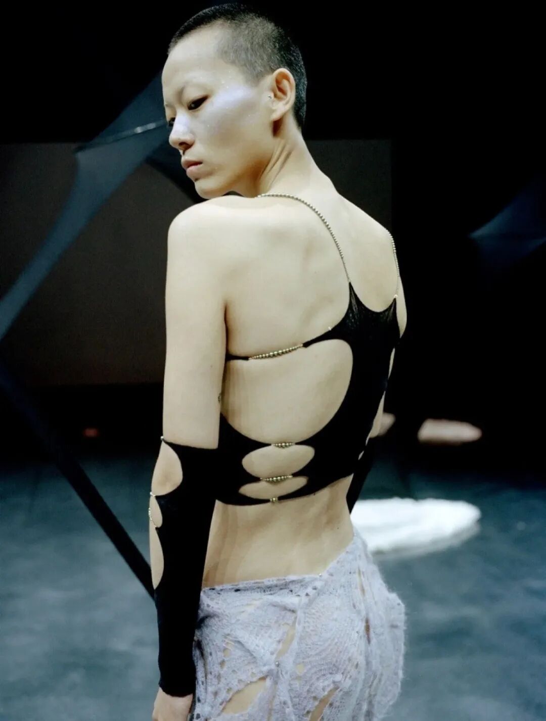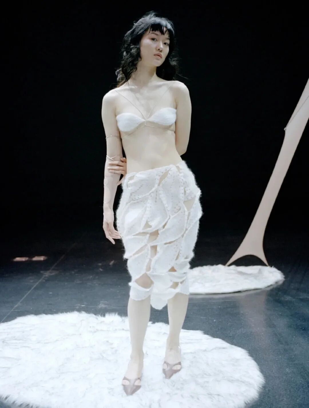 周睿将服装视为人体的第二层皮肤,通过研究皮肤与织物,身体与服装,在这几者之间不断探索,为它们的空间结构奠定了复杂的关系。