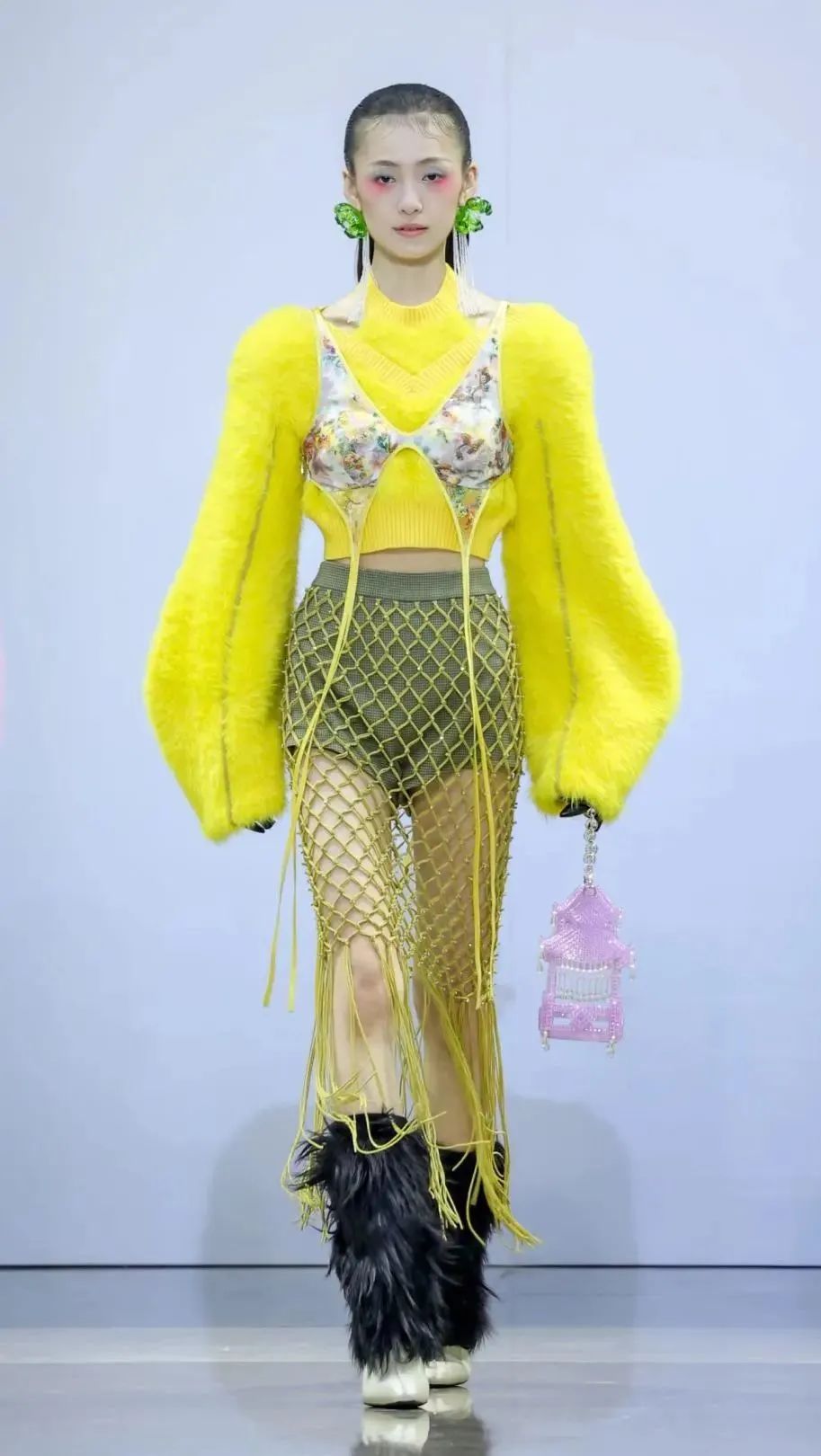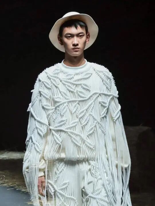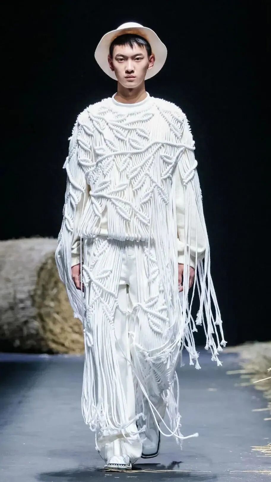 Thee.Them链条网格结合网纱编花,视觉效果丰富,百搭亮眼;SARAWONG2023秋冬发布“游园戏梦”系列提取苏州园林的月洞镂空,用交织变换,错落有致的线条网格及流苏体现以云肩为代表的戏服廓形,充满东方禅意和建筑美感。山谷少年发布“拾穗的少年”系列将农忙时期的绳编艺术运用到设计中,在纯白色的绳条上,用不同时期的麦穗叶、麦穗花形态图案将各个绳条连接,充分展现线性网格艺术,呈现360度全方位立体效果。