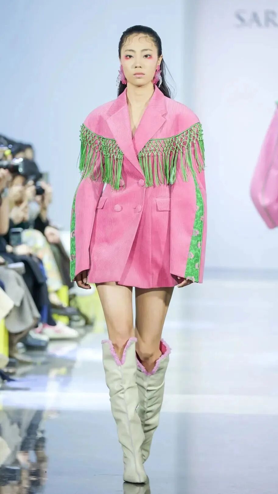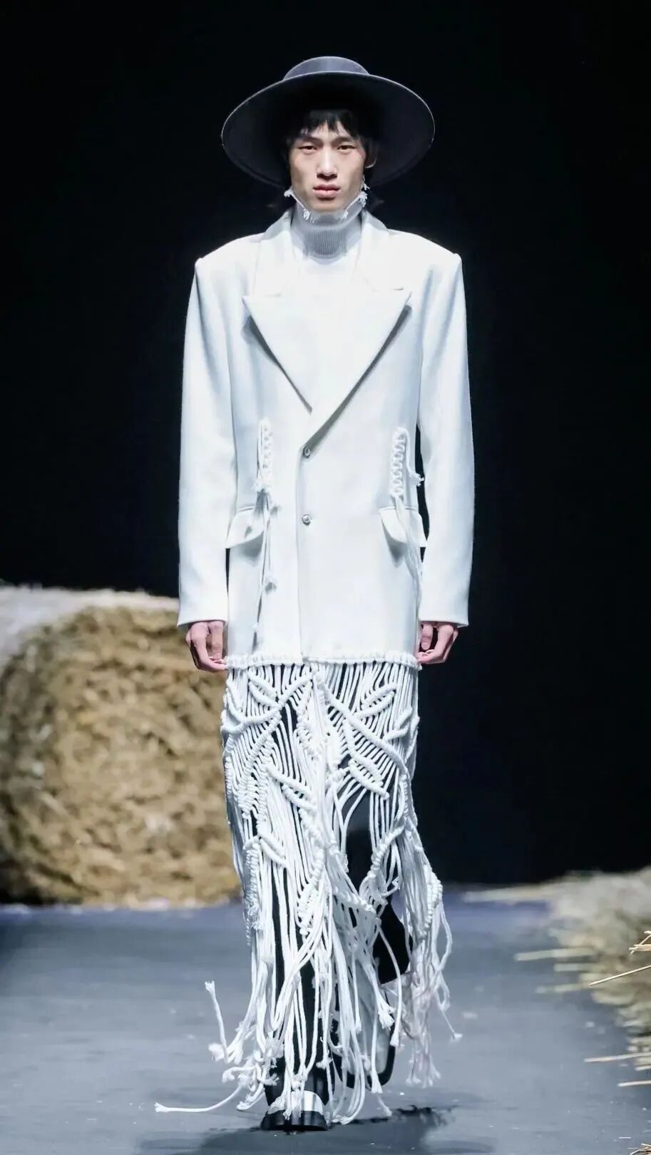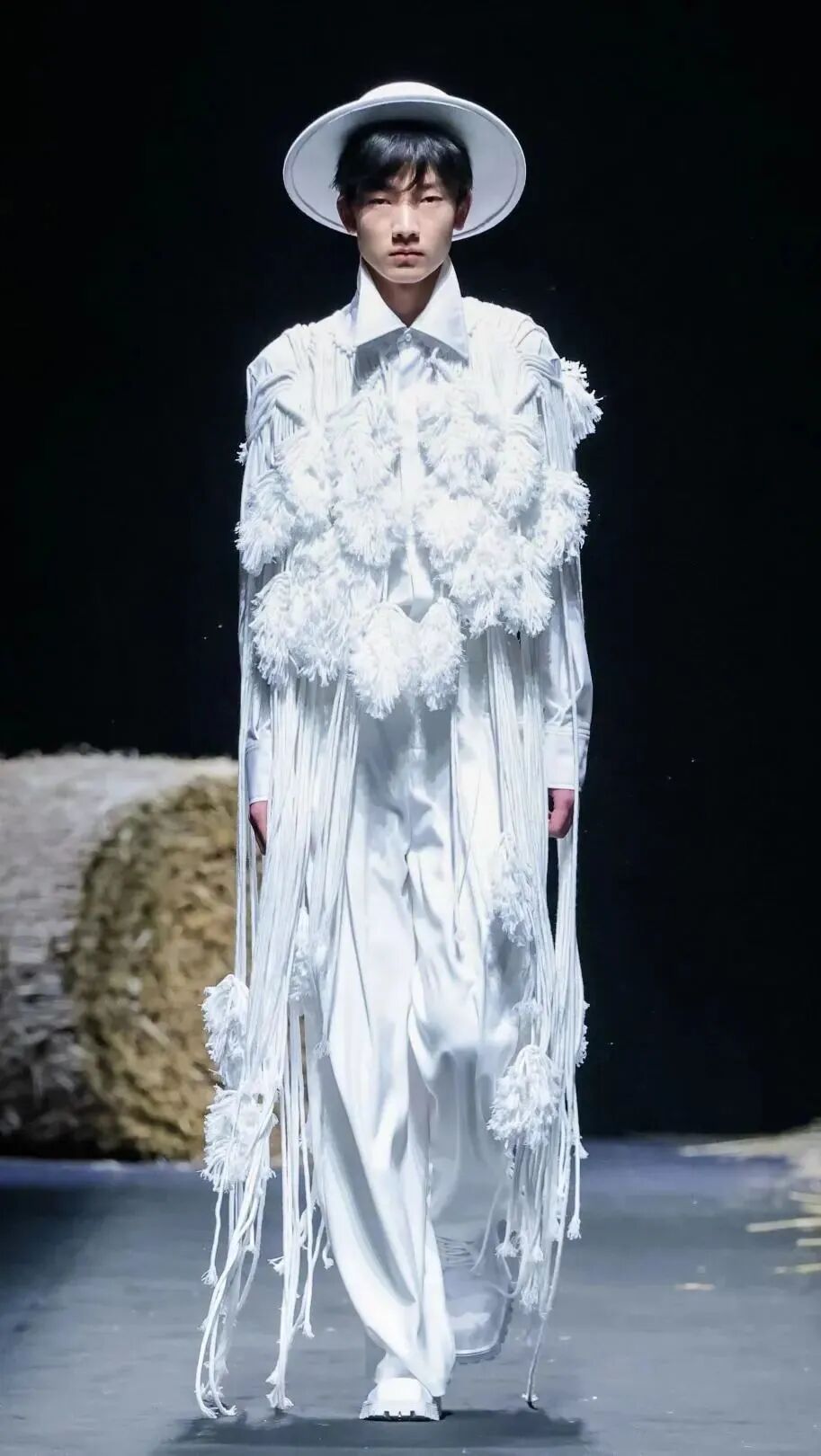 Thee.Them链条网格结合网纱编花,视觉效果丰富,百搭亮眼;SARAWONG2023秋冬发布“游园戏梦”系列提取苏州园林的月洞镂空,用交织变换,错落有致的线条网格及流苏体现以云肩为代表的戏服廓形,充满东方禅意和建筑美感。山谷少年发布“拾穗的少年”系列将农忙时期的绳编艺术运用到设计中,在纯白色的绳条上,用不同时期的麦穗叶、麦穗花形态图案将各个绳条连接,充分展现线性网格艺术,呈现360度全方位立体效果。