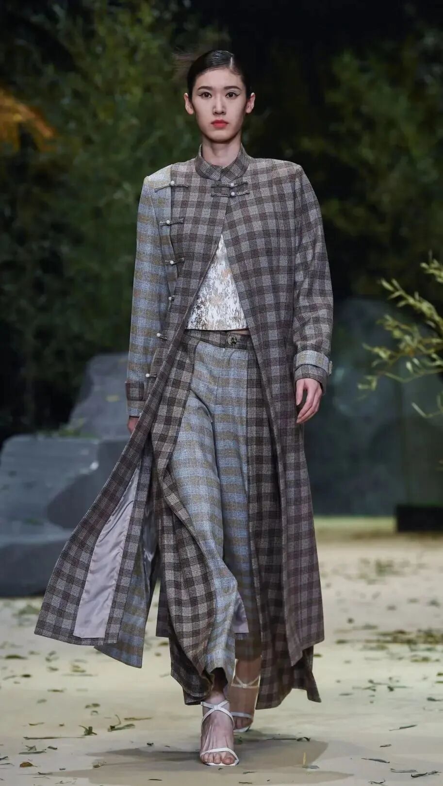 智慧、冷静、克制、潇洒、个性皆是袍式设计的美感形容词,不再刻意强调穿着者的曲线,东方美人袍式穿搭突出文化传承与时尚氛围感。优化了穿着体验的舒适度与安全性,配合斜襟工艺使慵懒的袍式廓形产生出一份飒爽和典雅。