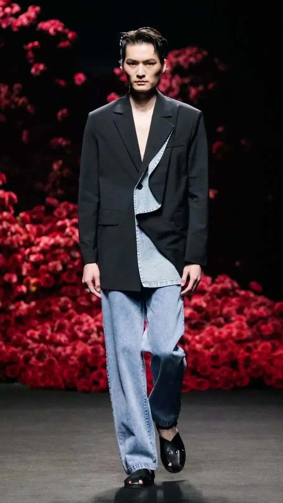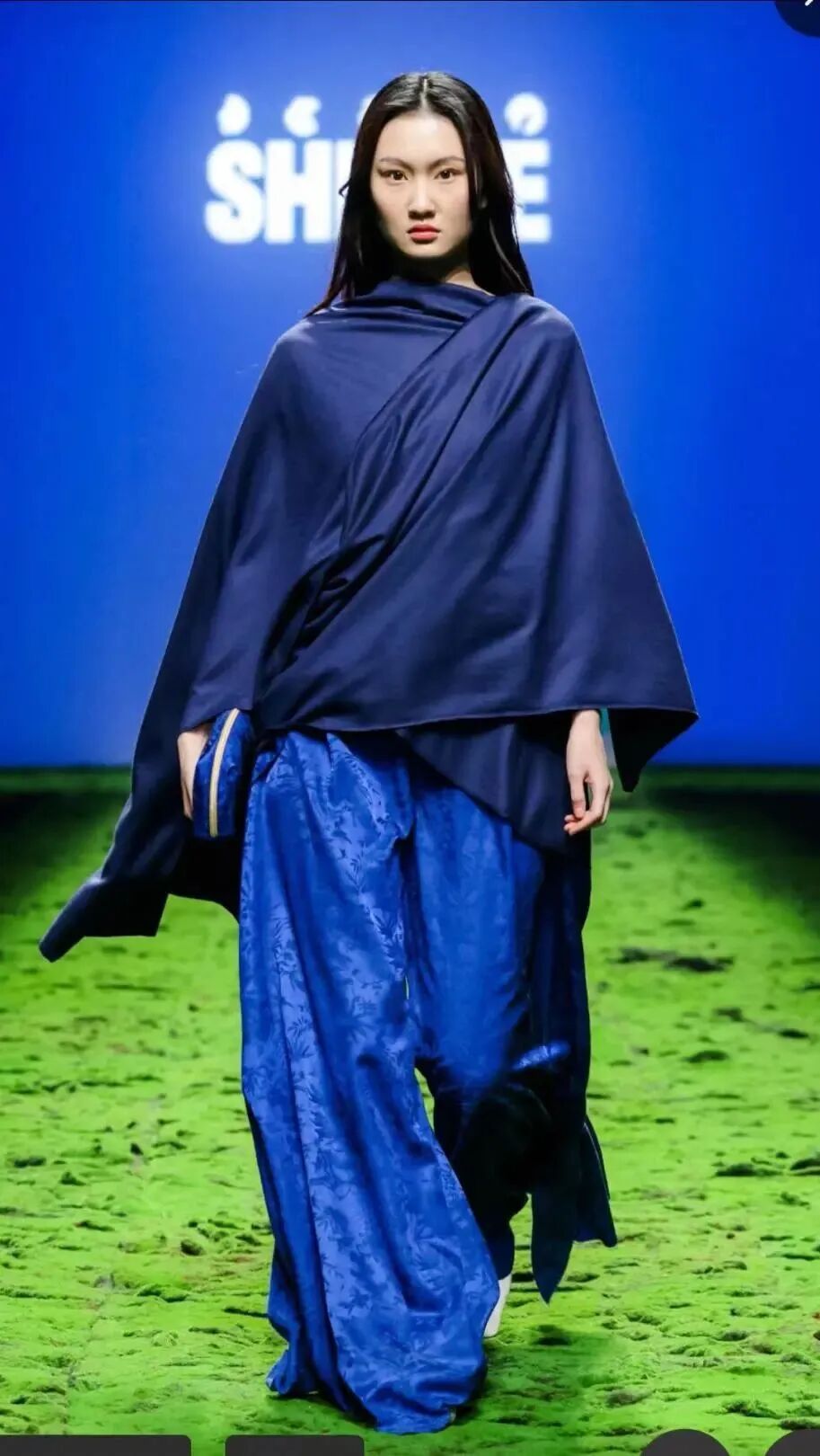 上久楷AW23中国国际时装周发布“有巢”系列,有巢氏构木为巢室,袭叶为衣裳,而建筑及衣裳都是容纳人的“居所”,因此设计师选用宋锦等一定骨感的面料制作更具有结构感的荡领外套,结合不同的扣合方式一衣多穿,打造简约利落的几何美学及鳞次栉比的建筑细节。ZICKNESS与馥芮雅选择丝缎面料调整荡领深度,更加轻盈慵懒。