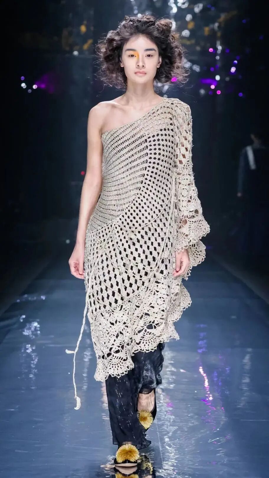时装线性网格艺术是真实与虚拟聚合,激发了二维与三维视觉张力,赋予网格每个节点变幻出个性设计与变化,让二维网眼/网格不再单调,成就时尚超纹理美学现象。