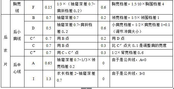 选取中间号型规格样板作为标准母板,选定衣片前、后中心线、袖中线作为推板时的纵向公共线,胸围线、袖山高线作为横向公共线,在标准母板的基础上推出大号和小号标准样板。各部位档差及计算公式见表4.2.3 。普通女衬衫推板见图4.2.5、图4.2.6。