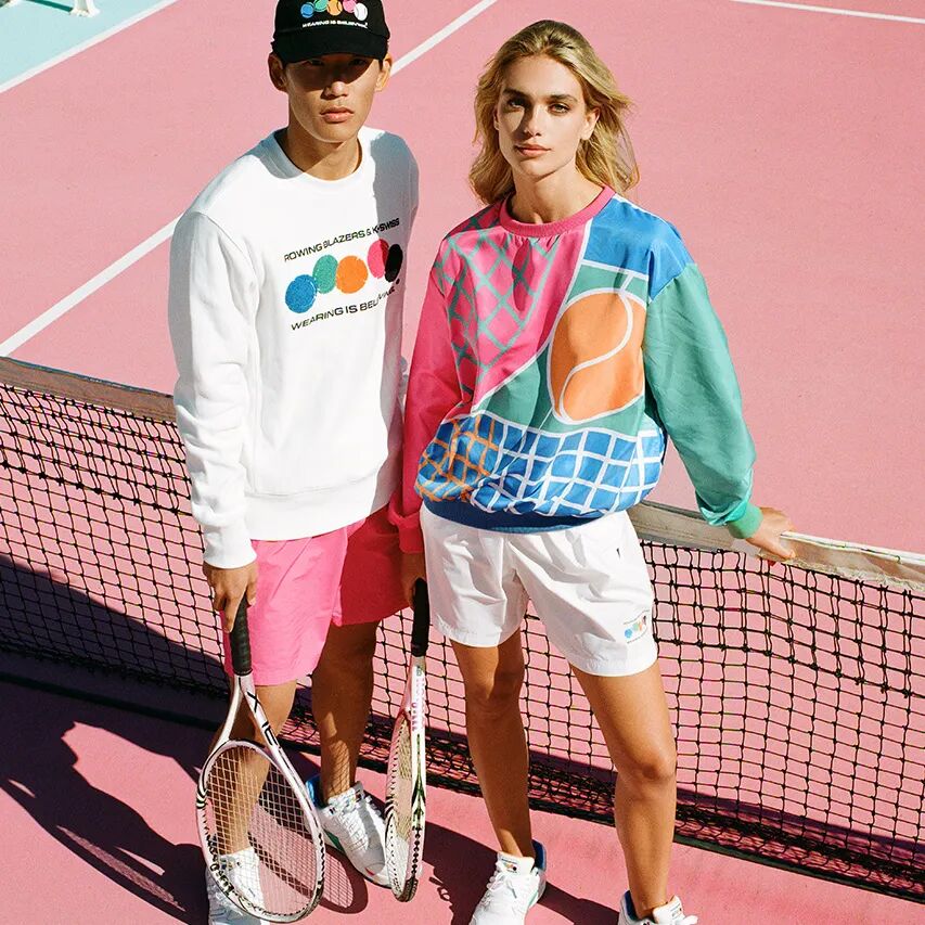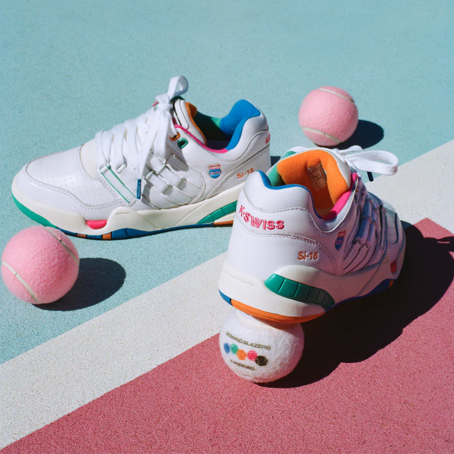 在此次联名系列中,K-Swiss的经典运动造型与Rowing Blazers的设计风格相碰撞,其款式以球拍运动为灵感,尽显俏皮活力感。