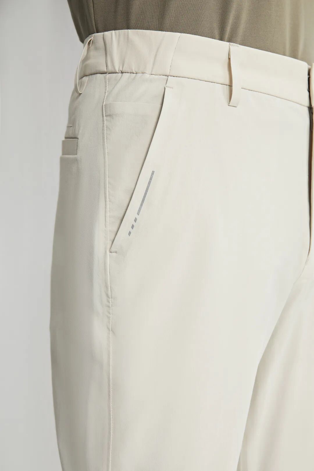 这种连档设计相对传统裤子来说空间更大, 因为裆臀空间更立体、更灵活、更舒适,所以对男性消费者比较友好,穿起来更舒适。不过由于工艺复杂,一般只出现在运动裤中,可参考“九牧王商务户外1号裤”的设计细节,已采用了这一细节与工艺,升级基础款,优化穿着体验。
