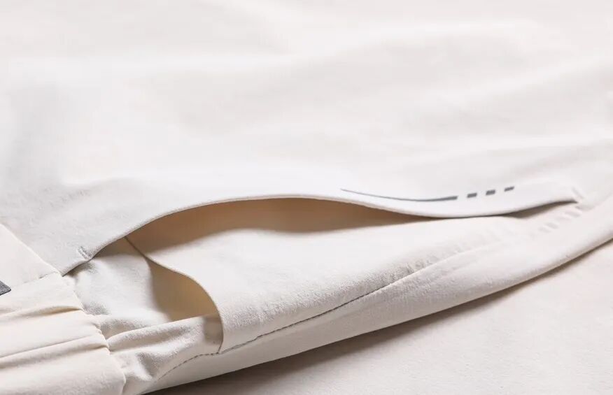 软压胶工艺具有光滑柔软,无感的优势。将外套常用的大面积软压胶工艺, 用于裤装,通过采用表面光滑的软压胶覆盖裤子缝线,可以避免因活动时缝线磨腿带来的不适。同时,软压胶经过1000次测试,弹性与柔软度均与面料一致,解决传统压胶过硬不舒适痛点。