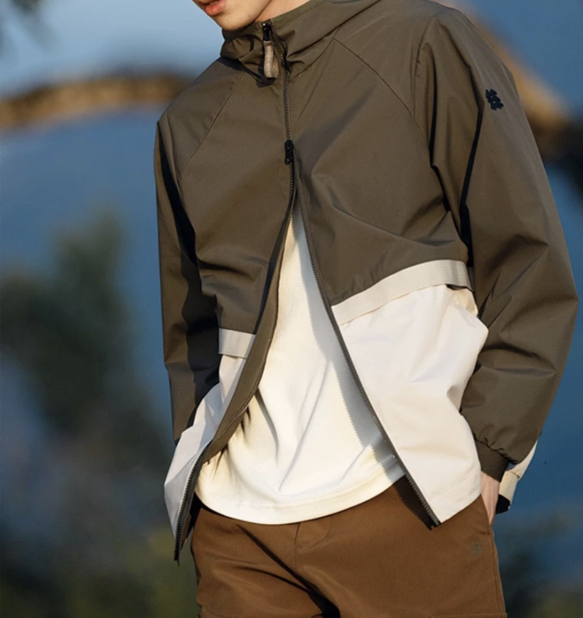 采用轻质、耐磨的环保尼龙,结合适应人体工学的版型结构,将环保材料和防风雨功能结合,融入设计之中。