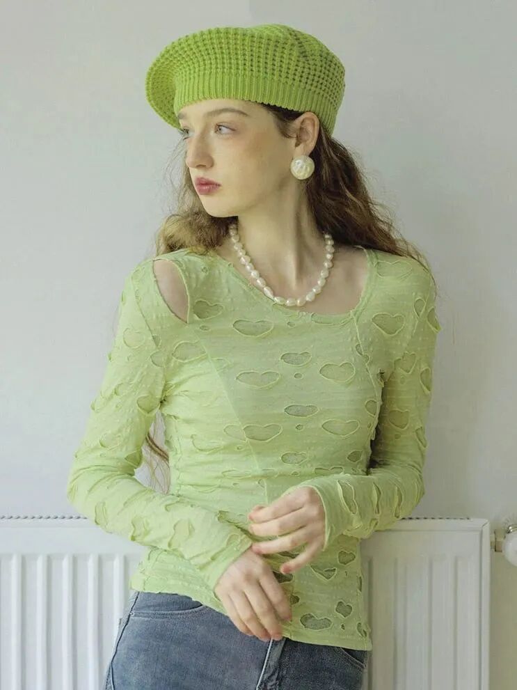 心型镂空的针织面料和手工感钩花
