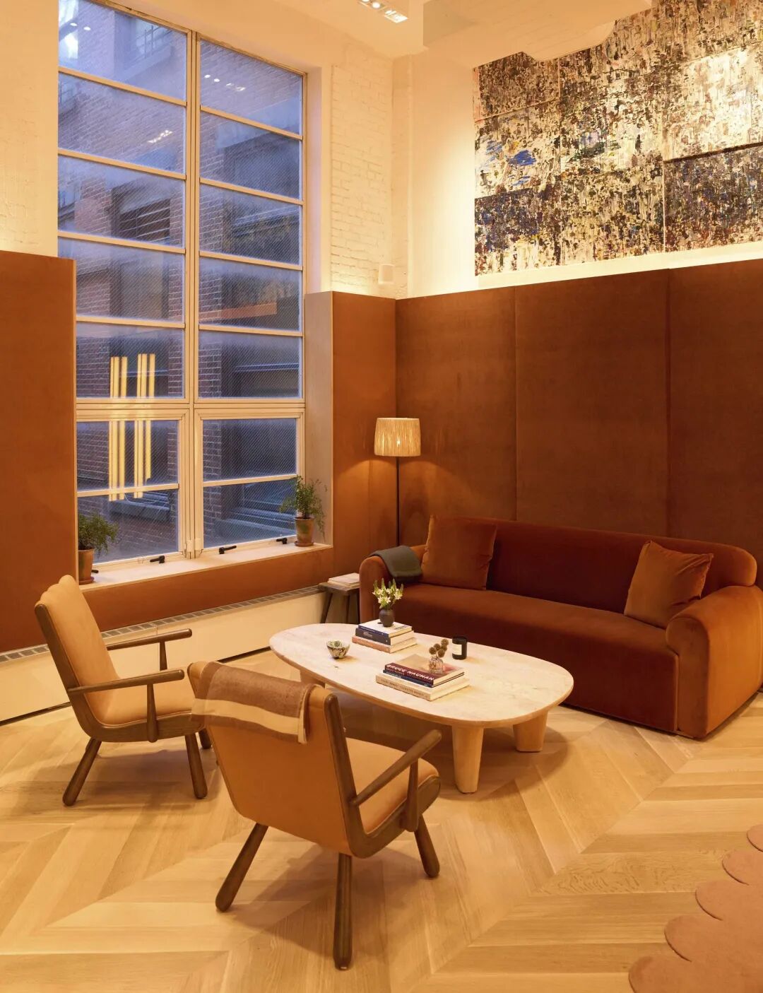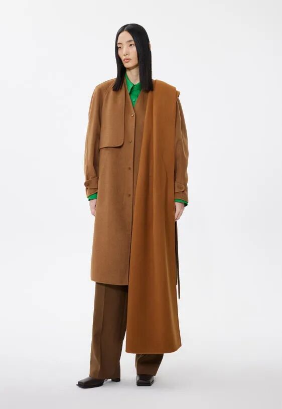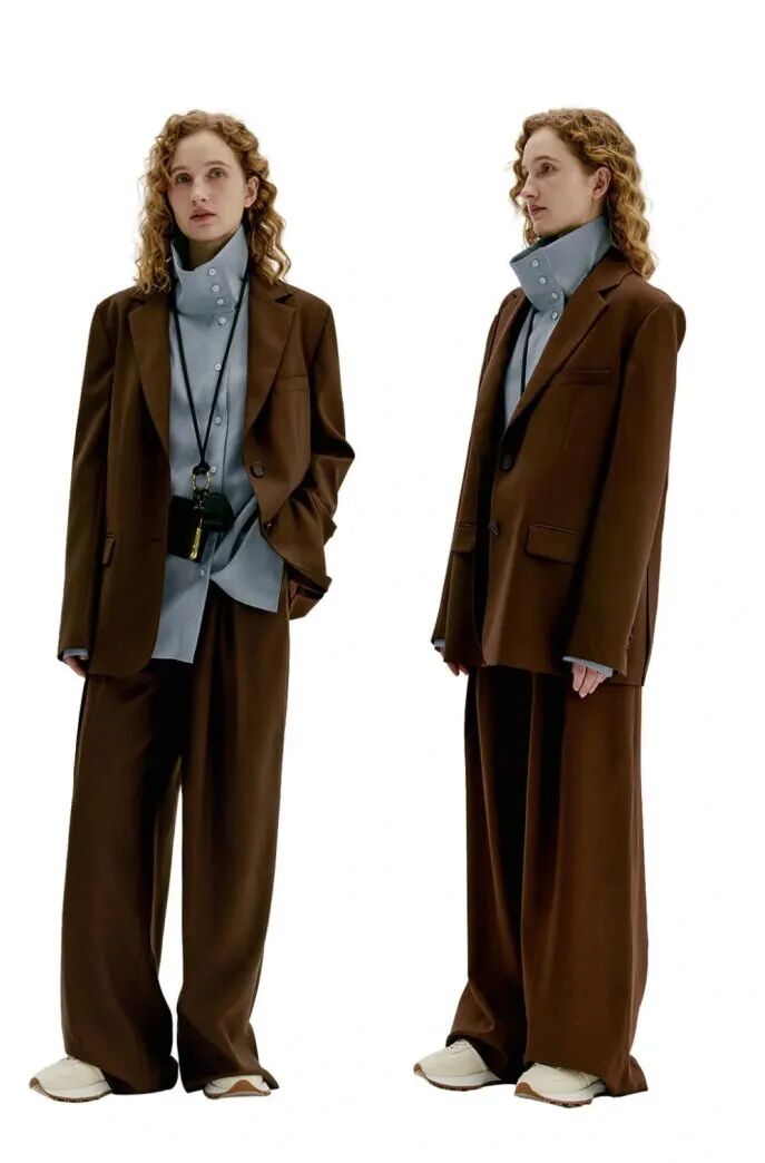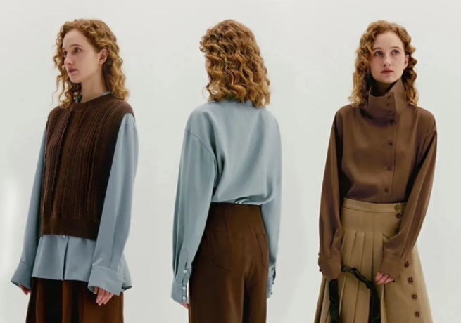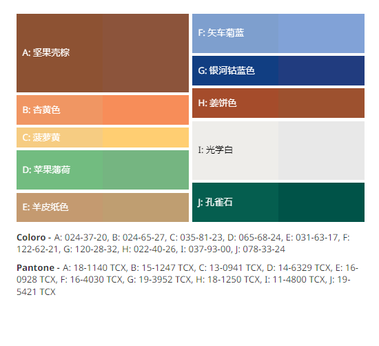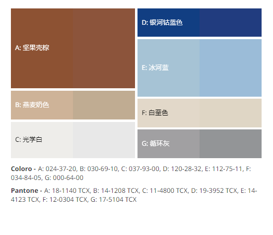 坚果壳棕是一款浓烈的棕色调,让人倍感温暖安心。在中国,鉴于消费者的态度仍然颇为谨慎,稳重而纯正的色调(如坚果壳棕)将继续引发共鸣。作为室内设计和时尚领域的重要色彩,这款经典棕色正备受设计师青睐,其色调不会显得过于新潮,但更具可持续性,也更加持久耐用。随着部分消费者寻求具有安全感和亲和力的色彩,坚果壳棕势必吸引这类人的目光。将坚果壳棕的应用拓宽至生活空间、配饰设计、时装。坚果壳棕自带温暖感和触感,与返璞归真和手工艺等主题相关。坚果壳棕是经典款式和居家投资单品的重要颜色,同时也能为前卫设计增添庄严感。对时尚设计而言,可以用坚果壳棕重新定义时尚准则,将坚果壳棕用于男女运动装、派对装、外套。Cuyana重视精简理念,每款产品都能贴合“恒久挚爱”、“经典永存”、“四季皆宜”等标签。精致色调更新和创新色彩搭配至关重要,为经典色增添新意。坚果壳棕和原力蓝可搭配菠萝黄、孔雀石和宇宙尘土色等亮色,展现复古的同时又不显陈旧。经典褐灰是绝佳底色之选。中性色一直是重要的商业性色彩主题,可作为无性别色彩策略的一部分。凸显质感的棕色调和百搭经典的浮岩灰以更加明亮的氛围呈现,与白色调相结合,打造出干净简约的配色。应用建议:从未染色、未加工的面料中获得灵感,使用中性色和植物染料。坚果壳棕与延续多季的燕麦奶色、羊皮纸色和白垩色相搭配,低调且有层次。可以采用简单的轮廓和柔美的面料推出纯色款式,进行层搭或采用渐变或色块拼接设计。在回归本质和实用、简约的极简设计策略的推动下,“恰到好处”的设计理念贯穿该色彩方向。柔和亮色的加入为原本严肃的色盘注入活力。应用建议:与温暖、触感和怀旧情绪紧密相关的坚果壳棕成为该色盘的关键,与性别包容的清新冰河蓝搭配的新颖配色,更加突出了两种色彩的特点。循环灰和银河钴蓝色的加入在提升实用性的同时也用于重塑经典款式。用大地色给人以沉静、安心的感觉,其色调不同于传统的户外风色彩,而是更浓郁、活力的自然色调。随着二手货和环保时尚越来越受年轻人追捧,经过#升级再制的滞销面料具有的中调色彩,也为该色盘带来灵感。应用建议:使用极具商业吸引力的蓝色,并搭配对比鲜明的优雅深红色、杏黄色与和田玉,由此为款式增添新意。选择经典条纹或#撞色设计,尽显青春活力气息。