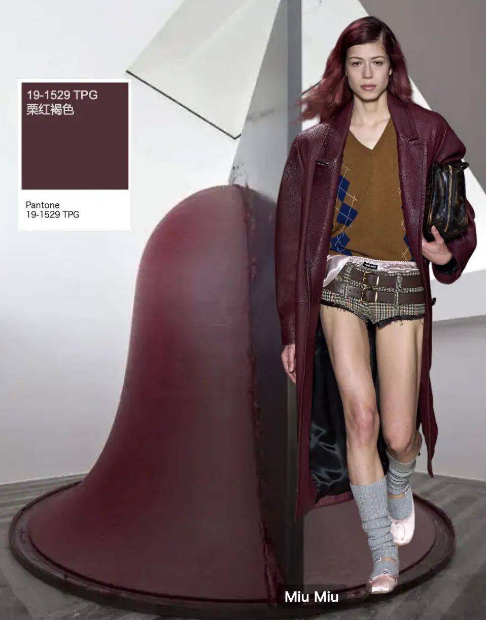 栗红褐色在新一季秀场上的频频出现给人一种眼前一亮的感觉,有着强烈的女性力量感,不管在商务还是派对上都可以做到多场合切换,打造复古奢华又前卫时尚的着装。
