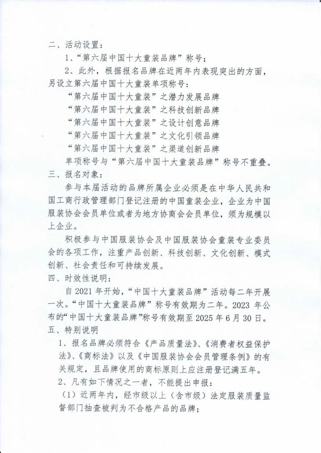 2、此外,根据报名品牌在近两年内表现突出的方面,另设立第六届中国十大童装单项称号: