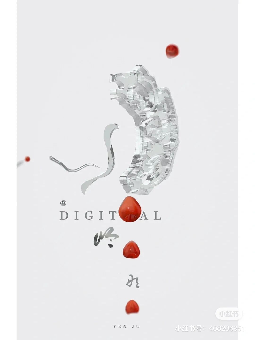 将具有光泽感的玉石物件作为主要元素进行创作,结合字母元素,运用拼贴、变形等手法,整体注入新潮灵魂,为新中式创作提供更多空间。