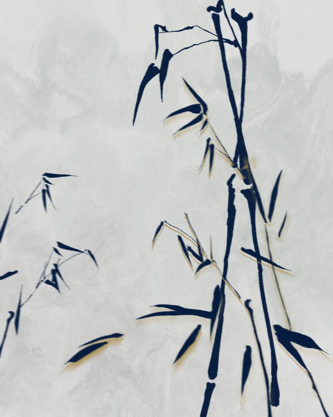 “轻风宋韵”主题原创图案以水墨画作、纵向描绘、和玉石效果为主要创作方式。