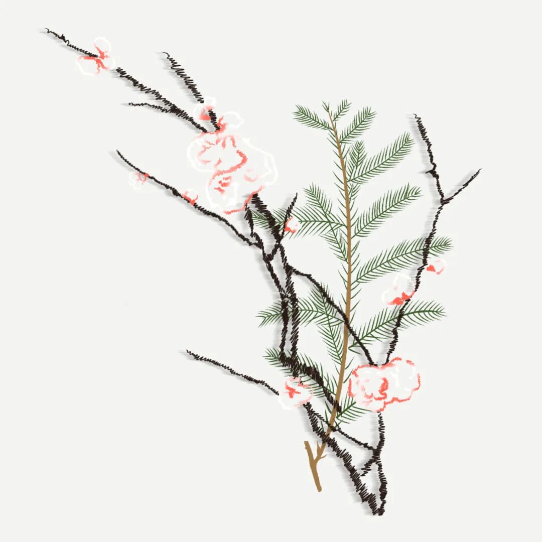 配色上中性内敛,搭配局部高饱和作为点缀,打造画面的清透感和中式韵味,满足国风客户对清雅风潮的需求,为新中式图案提供更多的创作空间。