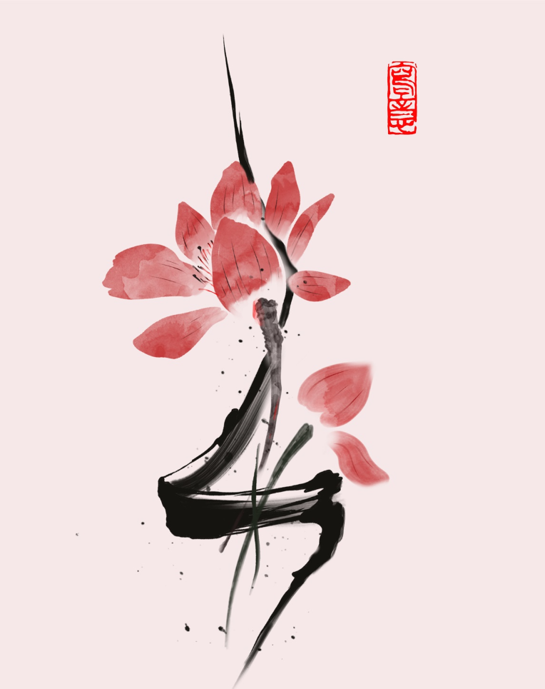 通过以上两张原创画稿,结合新中式布景、竹叶面料营造整体闲适、淡雅的氛围感,将图案以定位印花的形式运用于外套单品上,简约又不失中式韵味。画面整体充斥禅意、宁静的气息,为图案的呈现提供直观的视觉感受。