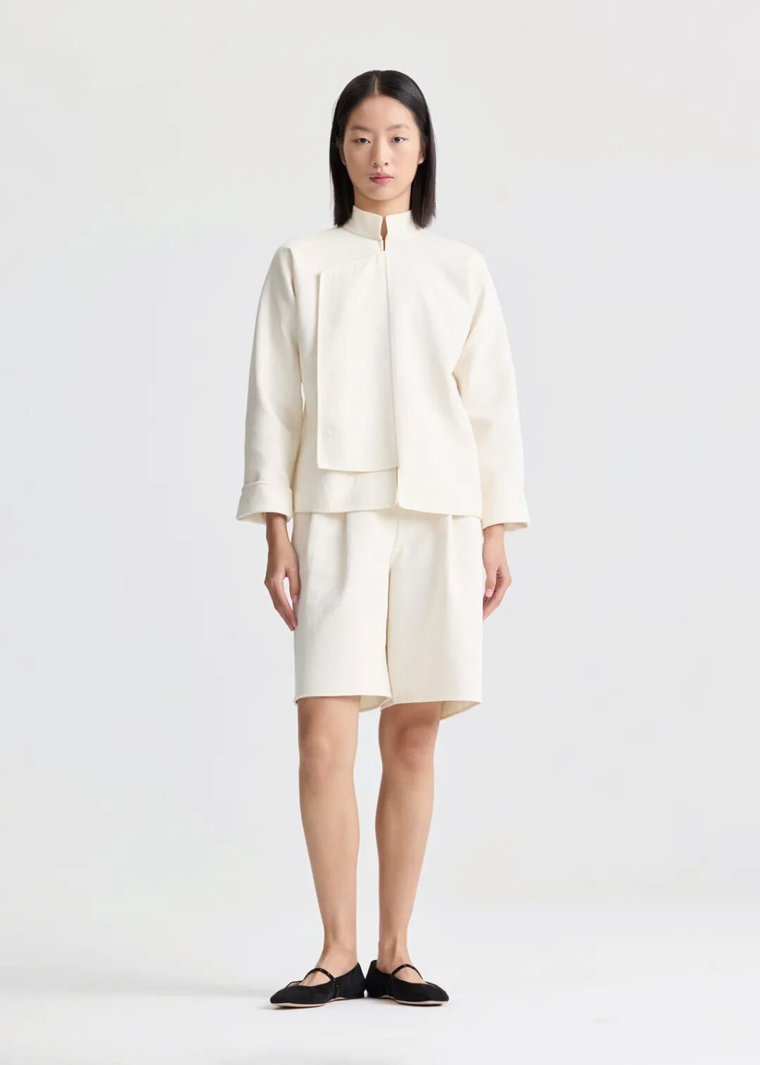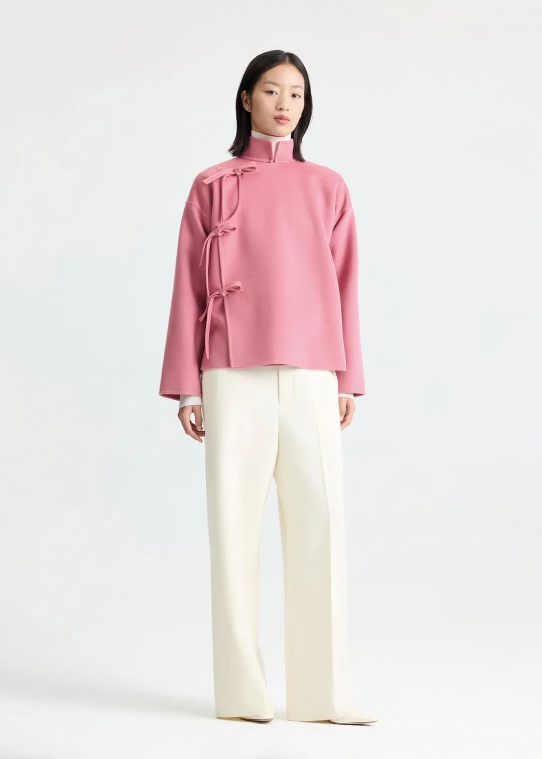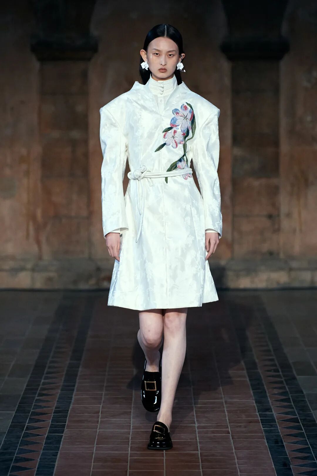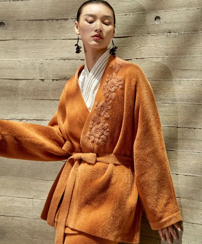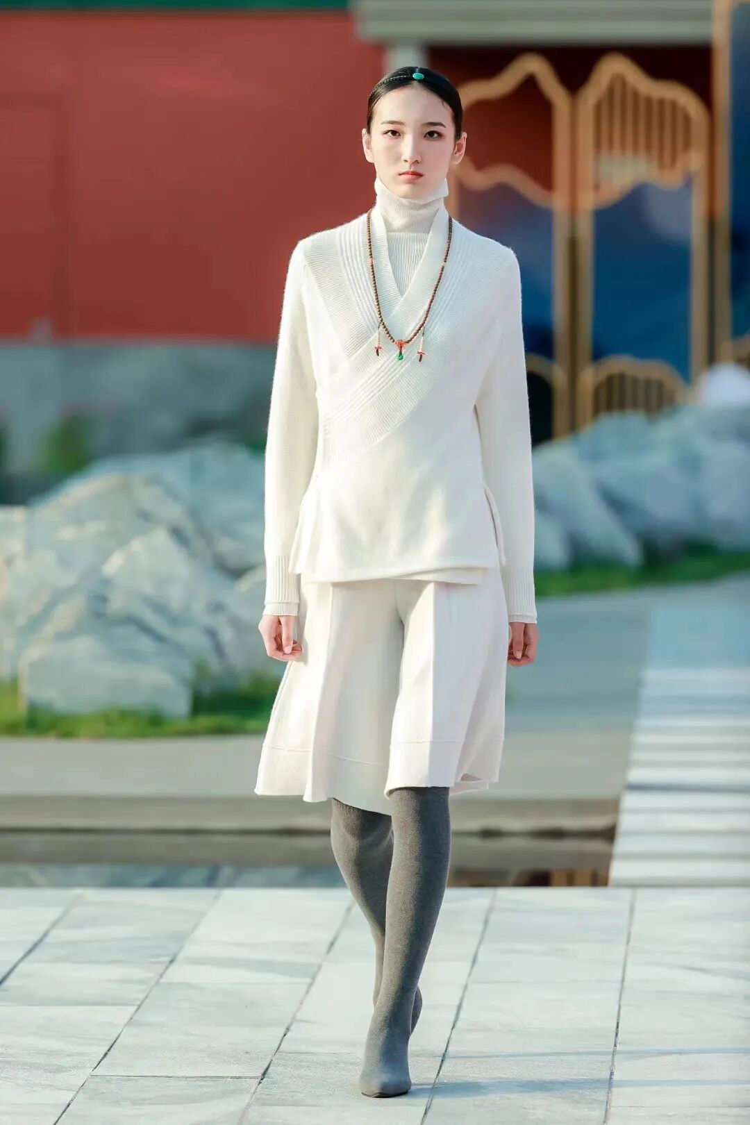 在传统的立领上加入设计点,通过加高的立领、双层立领、斜口领型、刺绣工艺等多种解构设计形式体现新意。融入更加多样的装饰手法,使立领在保留其韵味的同时,增加领部的宽松度,符合现代人不爱拘束的舒适需求。