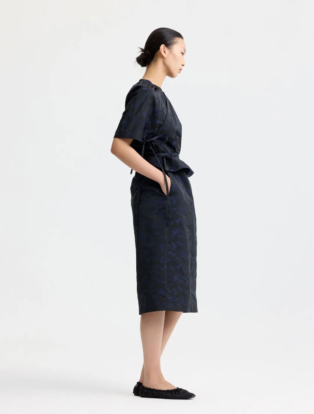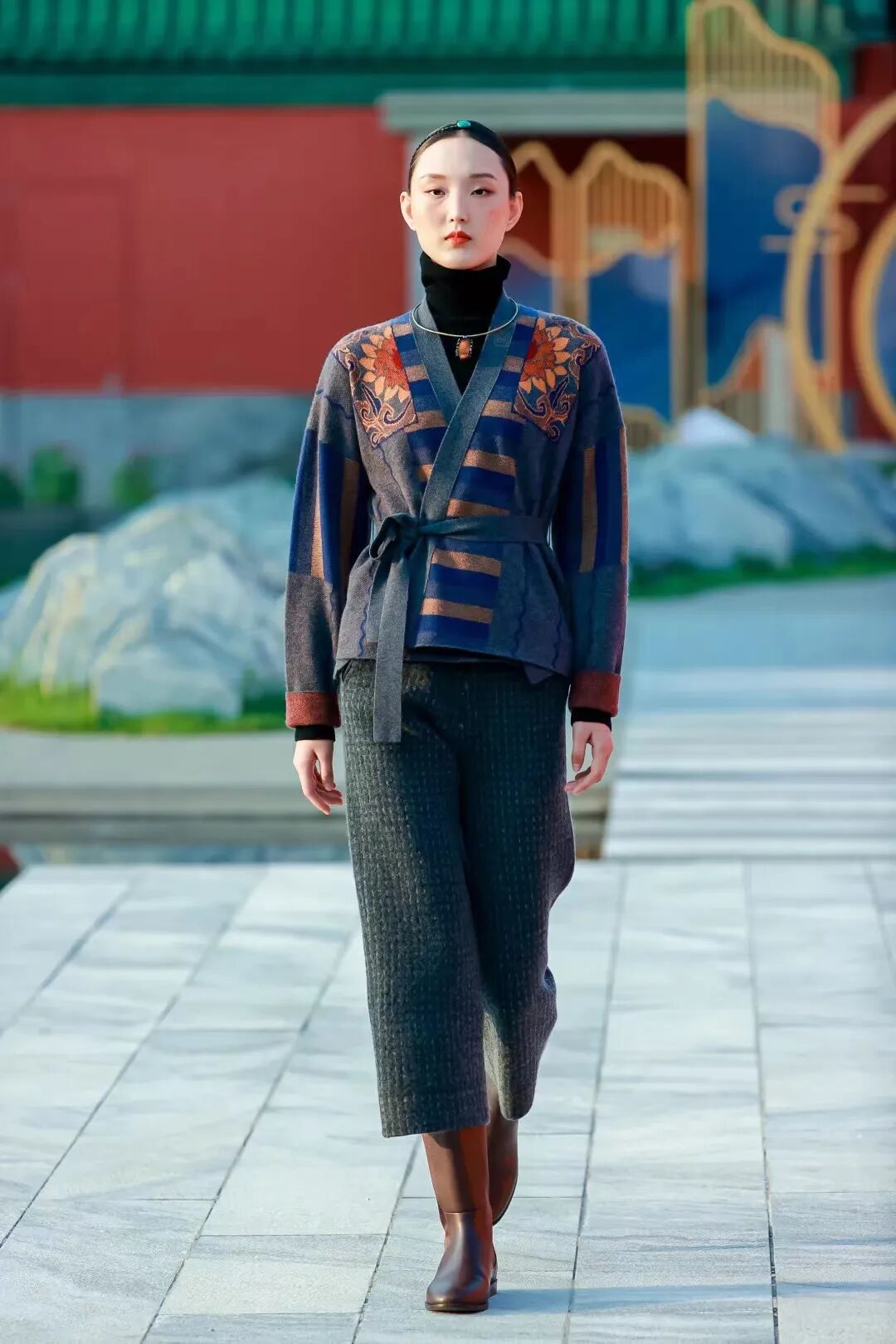 腰部的装饰也通过不同的材质和造型来诠释,提花腰带产生更加具有浓烈的中式气息,独特的收腰效果使款式瞬间出彩。利用传统工艺对腰部进行点缀便起到画龙点睛的作用。