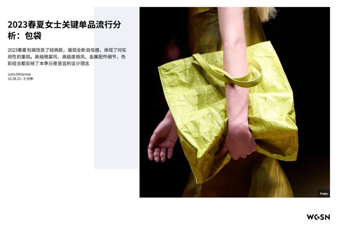 流行时尚 | 2023春夏女士关键单品流行分析:包袋 | WGSN x CHIC