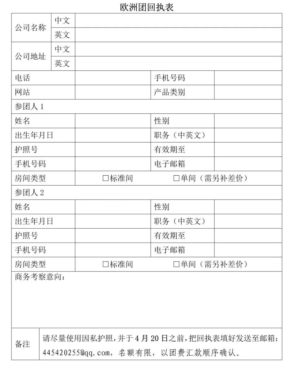 附件2:欧洲团回执表