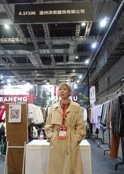 珍瑾服饰今年是第五次随瓯海服装协会参展团参加CHIC展,历年来每年都会积累点参展经验,不断完善参展思路。公司董事长吴爱微介绍说:“产品是决定参展效果的关键,第一次参展时只带上简单款的外贸产品,上门的客户廖廖无几。往后不断改变思路,每年都会增加多款产品,还带上适合内销市场的男女装产品,也包括各类定制服装,非常吸人气。今年进一步改变思路,除了在瓯海男装、女装展团布局展位外,还在温州服装商会定制展区申请了展位。每个展位专展适合的产品,更加体现产品专业化,增强了吸引客户的力度,效果非一般的好”。
