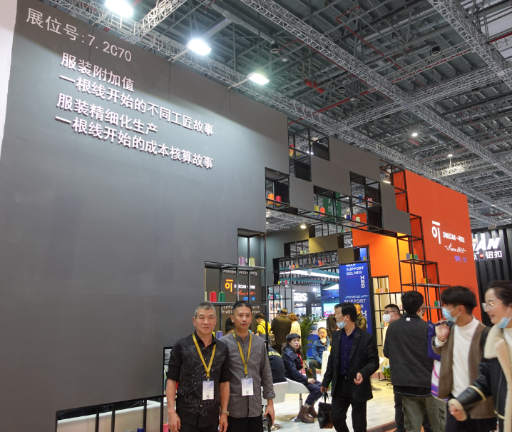温州线业老大——一可线业也同台展现在中国国际纺织面料及辅料博览会上,大展位特装展宏图,品牌宣传引擎驱动,展位上人气爆滿。