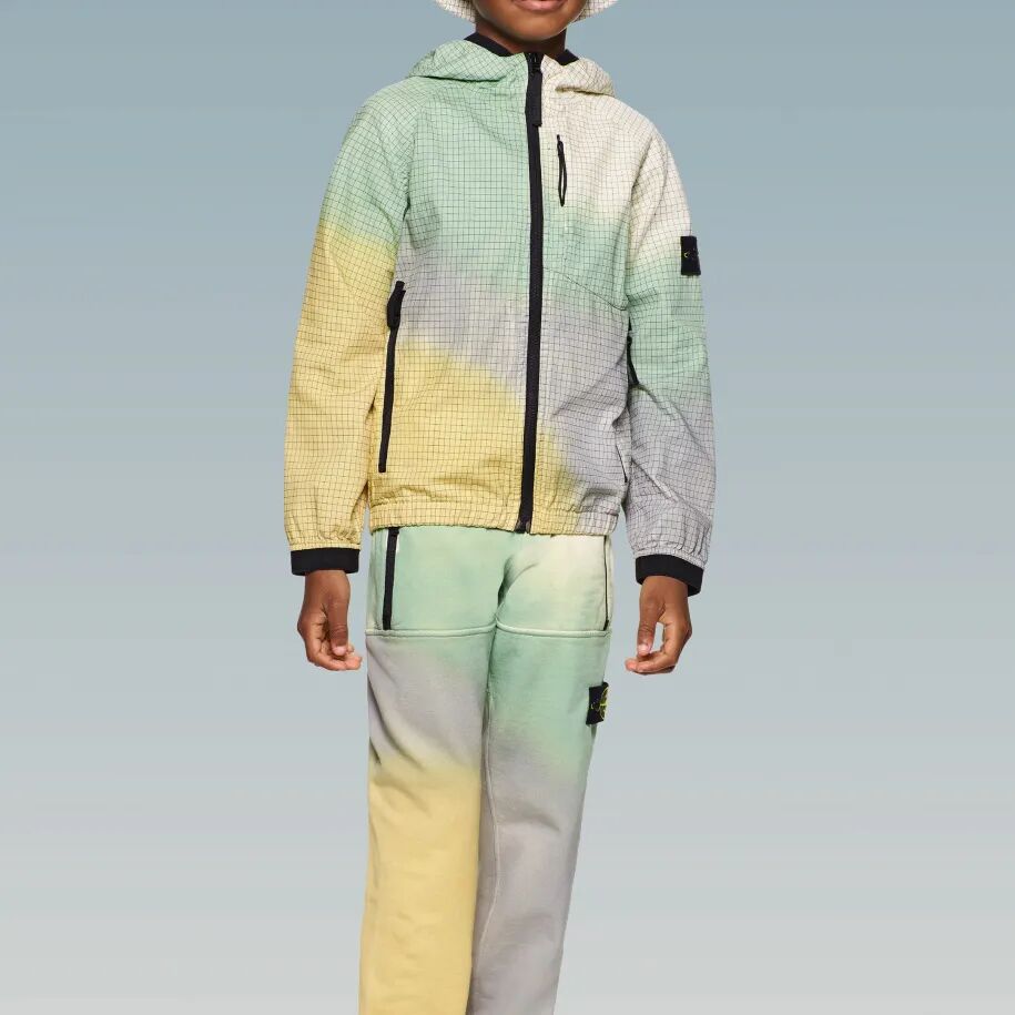 本季,外套设计深受套装影响,连帽防风衣通常与短裤、休闲下装以及暖季配饰相搭配,如渔夫帽。扎染设计呈现新颖的朦胧纹理和失真染色效果,极具性别包容性,有时则呈现风靡已久的色块拼接外观。