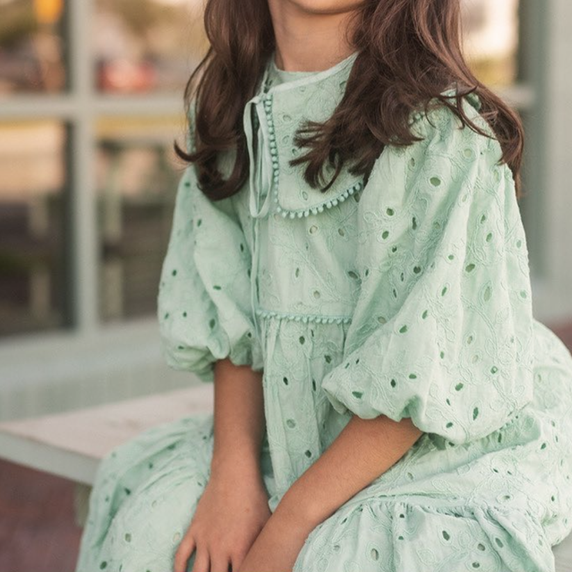 采用夸张细节,如个性衣领和泡泡袖,为量感连衣裙增添一丝奇特感,具体请查阅2023春夏关键时尚单品:女童服装。