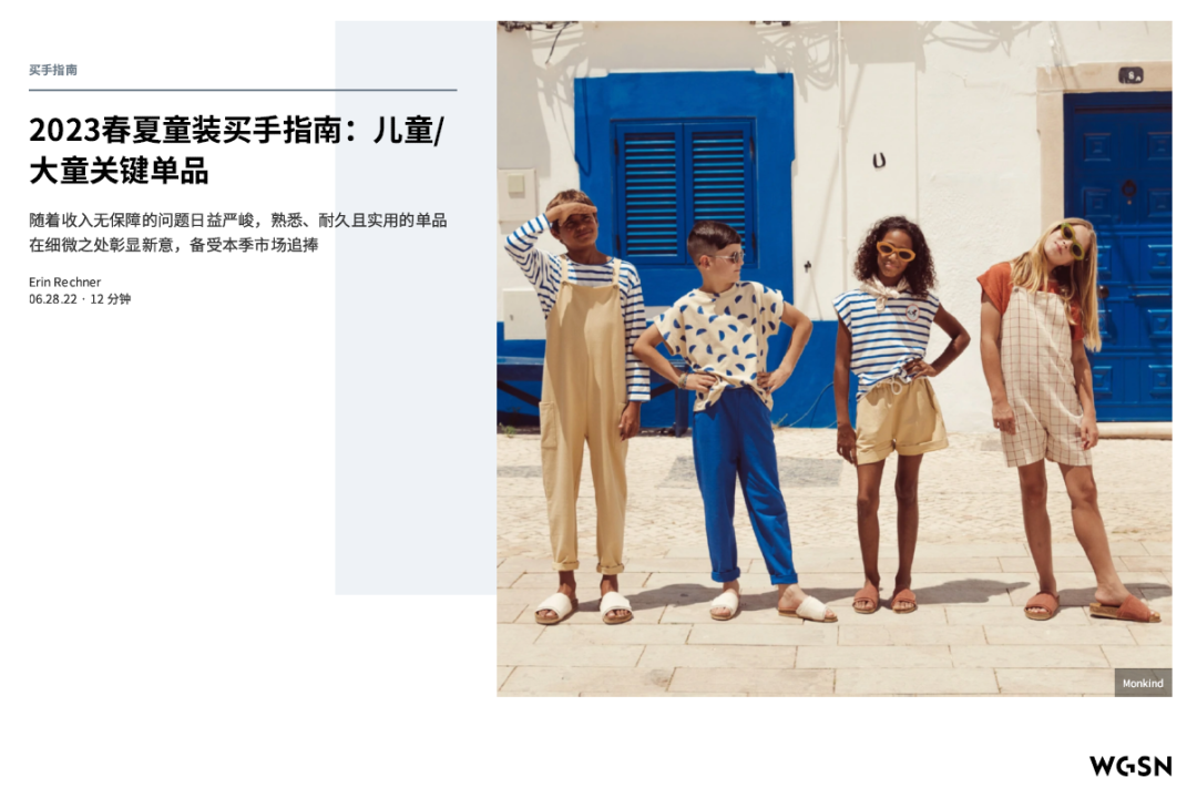 流行时尚 | 2023春夏童装买手指南:儿童/大童关键单品 | WGSN x CHIC