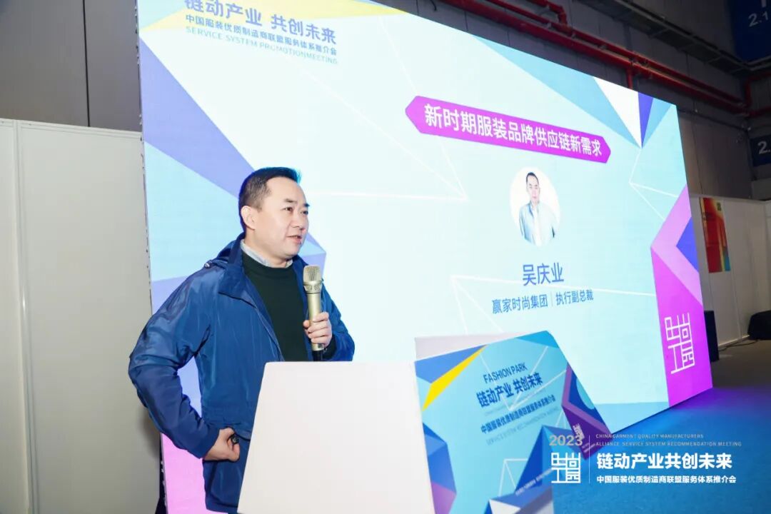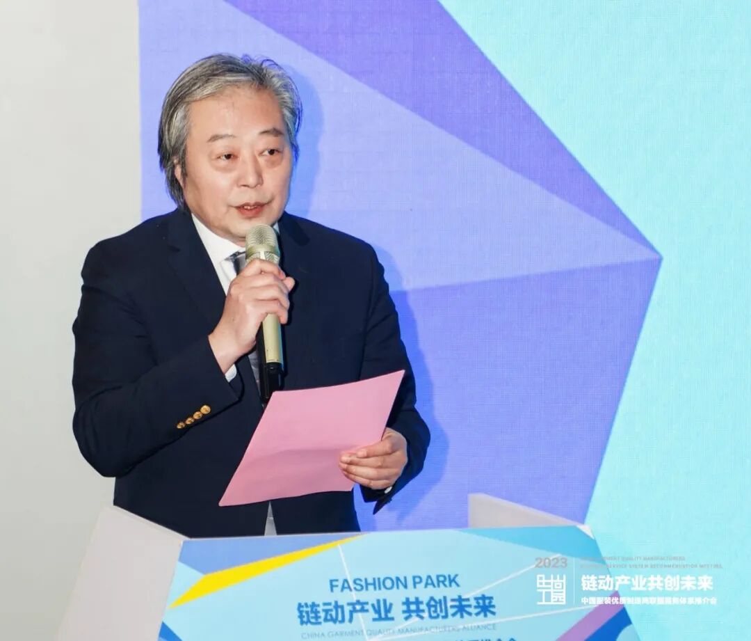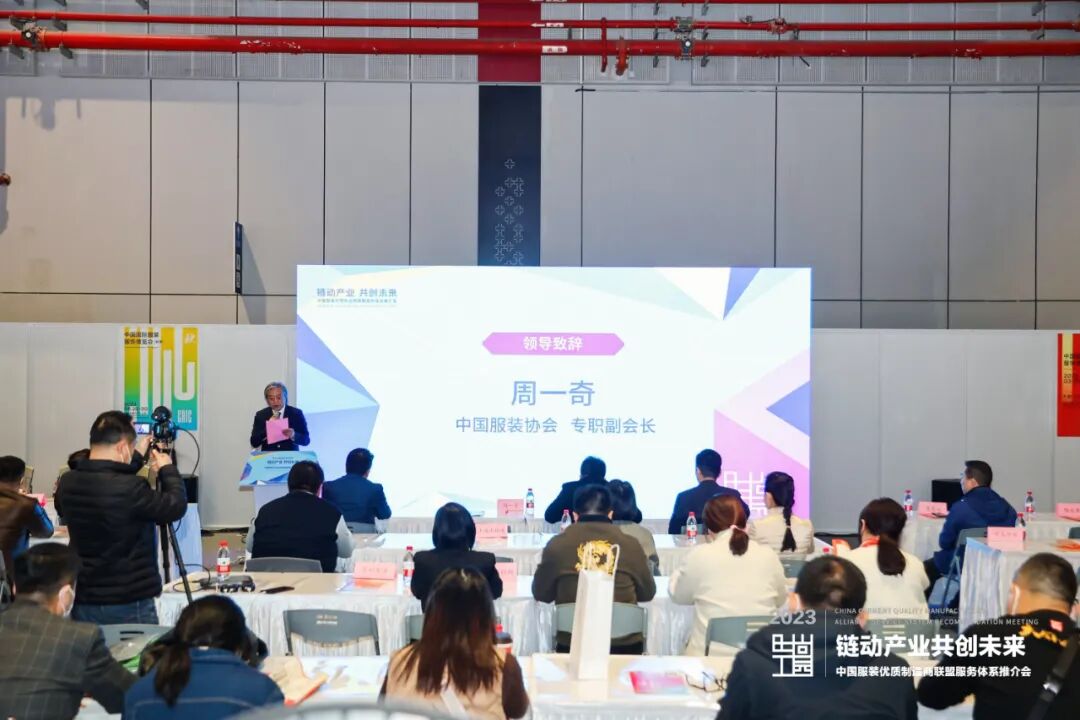 中国服装协会专职副会长周一奇中国服装协会专职副会长周一奇出席了本次推介会并发表致辞。他表示,当前,在中国式现代化建设新征程全面开启的背景下,中国服装产业正在面临着与以往截然不同的供应链挑战。整合优势资源,贯通产业协同,将行业服务下沉到企业,以及产业集群,推动供需双方互助、共赢,形成紧密的战略合作,这不仅是当前中国服装产业高质量发展和服装品牌供应链优化升级的重要工作,更是新时期中国服装协会的重要使命之一。作为中国服装协会发起成立的综合价值服务平台,中国服装优质制造商联盟——时尚工园,紧抓“高质量发展”要点,在2023年,重新定位时尚工园,延申服务链条,重点开展以务实有效商贸对接、资源链接为核心的综合服务工作,进一步加强与各产业集群、服装品牌及电商平台的深度对接与合作,构建数字经济时代“大中小融通、产供销协同”产业创新生态体系,推动中国服装产业基础高级化和产业链现代化,推动产业集群高端化、品牌化、国际化、绿色化发展,助力产业集群创建“世界级产业集群先行示范区创新基地”,重塑全球供应链产业链竞争新优势。他还提到,参加本次推介会的企业家都是行业创新融合发展、制造业转型升级,民族复兴的中坚力量,这次活动充分体现出疫情之后大家对未来发展的决心和信心。本次推介会是中国服装优质制造“国家队”一次汇聚、一场宣言、也是走进新时代,再创新辉煌的一个新起点。