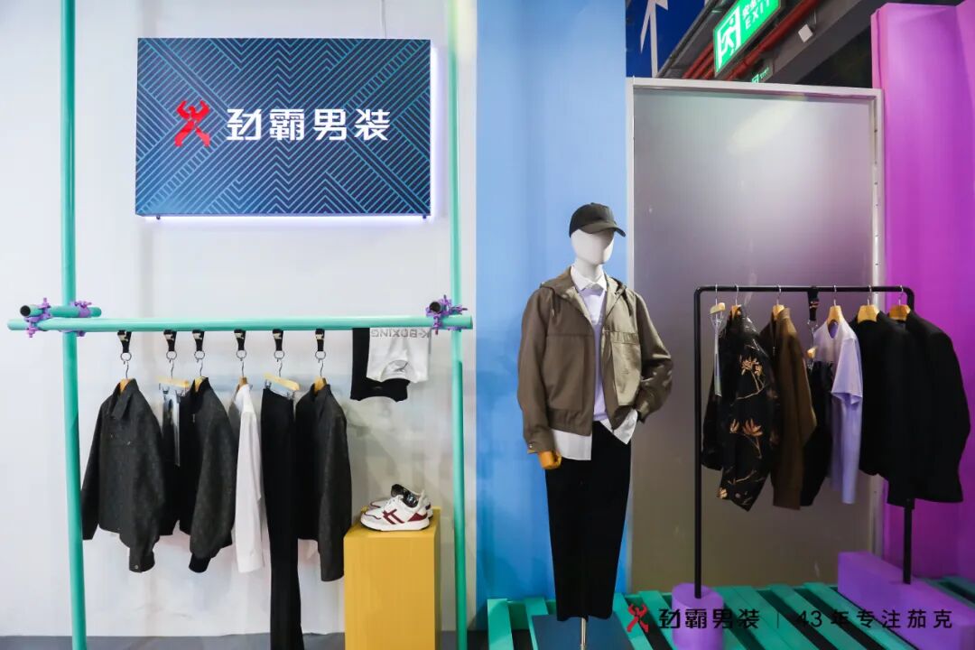 传承拓展茄克实力,劲展时代青年力量。青年力量展区呈现的是劲霸男装2023春夏系列茄克及KBXNG精品配饰,商闲皆宜的风格满足用户在不同场景中的时尚穿搭,不仅传承着劲霸男装深耕中国茄克的初心,更是传递出劲霸男装CEO兼创意总监洪伯明作为90后劲三代,以拼搏不息的青年力量探索艺术设计与商业之间新路径的实践。