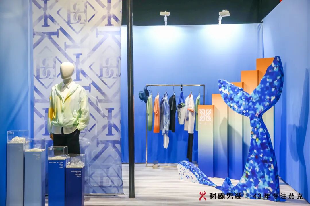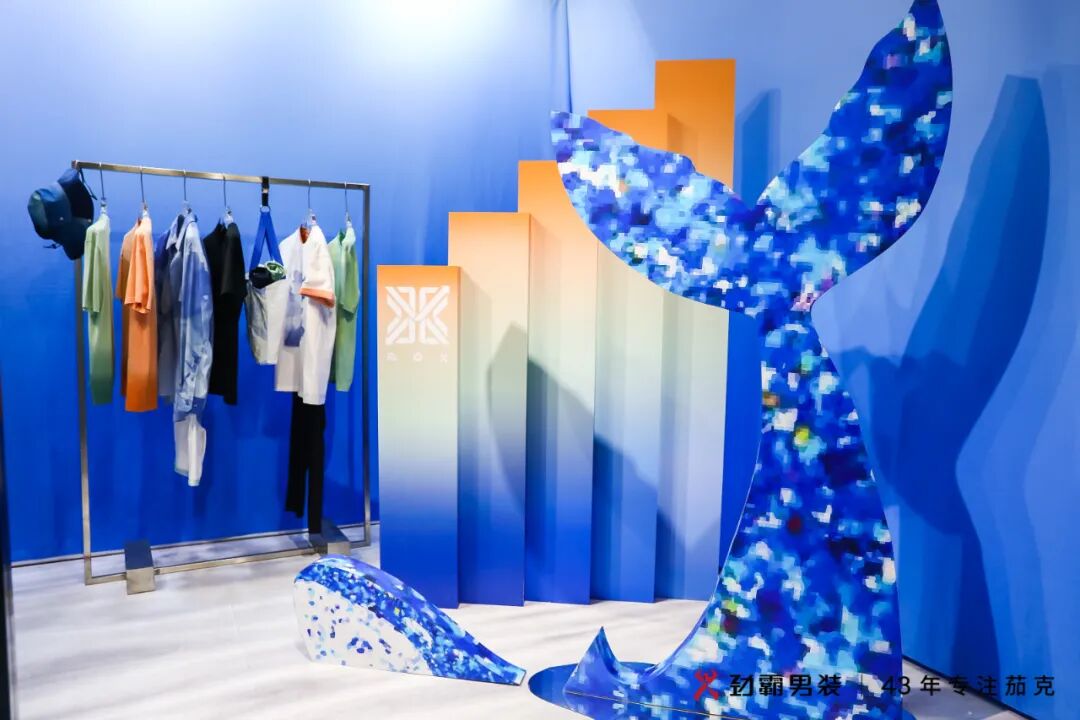 用“国棉”织布,造“国潮”之衣。国潮国棉时尚展区展陈即将上市的蜉蝣美术馆2.0系列,以“52赫兹的鲸”为灵感主题,甄选高克重优质新疆棉,以国棉混纺海洋回收环保纤维,打造手感和品质兼具的新型环保再生面料,透气吸湿性强,上身舒适挺阔。多种设计手法诠释海洋环保生态的无限可能,搭配治愈的低饱和色彩,打造出极富当代时尚感、可持续生机的夏秋季系列。劲霸男装善用“中国好棉花”,匠造“高端新国货”,不断引领中国男性的着装美学风范。