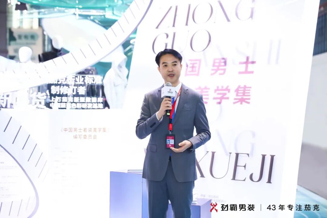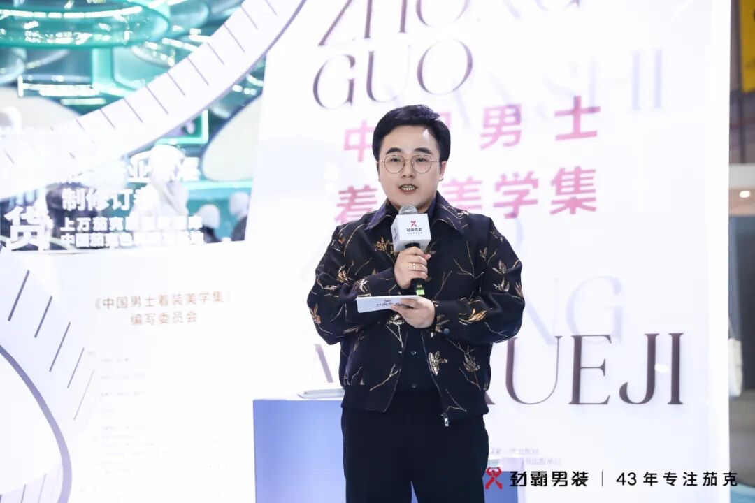 出版仪式现场,中国服装协会常务副会长杨金纯表示:“《美学集》融入了很多高校老师、知名学者、知名专家以及行业从业者多年的心血,特别期待这本专著能够把相关研究成果,满满的行业情怀,对中国男士着装倾注的温度传递给大家,同时也希望《美学集》能对整个服装产业的发展,对中国男士的穿着起到提升作用”,劲霸男装CEO兼创意总监洪伯明分享《美学集》编撰初衷,“与当前急速发展的中国男装市场规模相比,我国男士着装美学缺乏系统性、专业性的梳理与构建,这本美学集诞生是具有前瞻性成果的。劲霸希冀以服装教育教学为切入,向未来入行的学生群体输入系统性现代化视角美学体系,并加速构建中国男装文化产业的体系化,这是劲霸男装作为行业头部品牌的愿景,也是企业的责任担当。”并现场向东华大学、浙江理工大学、江南大学、北京服装学院等院校师生代表赠送《中国男士着装美学集》。在媒体采访环节,劲霸男装CEO兼创意总监洪伯明在接受《纺织服装周刊》记者采访时表示,随着中国经济飞速发展,更加开放包容多元的市场环境,推动中国男性着装需求从基础功能性到开始对服装设计、面料、品质、色彩产生初步要求。劲霸男装在经典中国茄克的基础上,全面拓展茄克品类宽度及适穿场景,提升设计丰富度满足中国男性在商闲等多种场景下年轻态、时尚感的新时代着装需求。未来,劲霸男装将继续推动与男装发展相关的各项工作,不论是国内的重要的舞台,还是国际舞台上,都将积极为中国男装品牌发声,表达我们自己的态度。在洪伯明看来,之所以要持续的推动这项工作,是因为如果我们不去做的话,那么可能坚持做中国男装的人和关注男装的人会越来越少,所以劲霸始终在坚持为中国男装行业发声,向世界输出中国时尚的态度,和中国时尚自我不断的突破超越。我认为这两个点是我们必须去做的,我相信未来我们持续为行业的发展和为消费者去创造价值,市场反馈一定不让人失望。