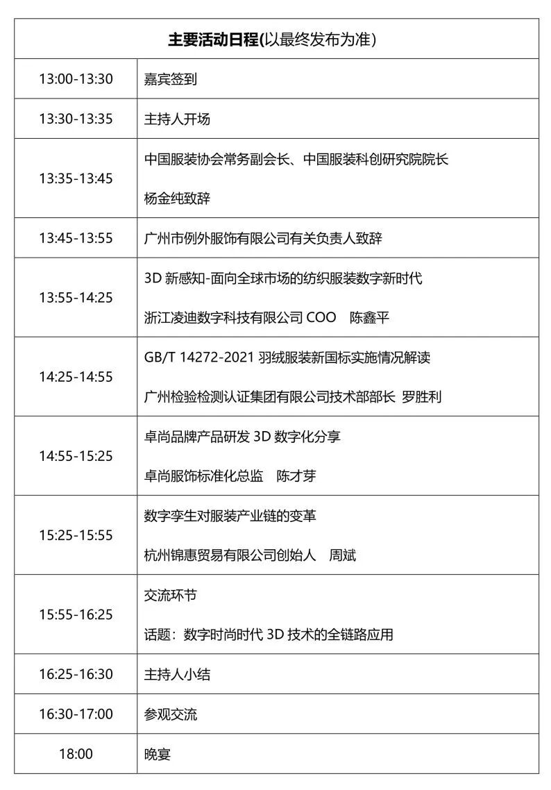 随着数字化浪潮助推我国服装产业发展,传统服装企业正经历新旧动能转换,服装消费市场正在完成重塑。在这样的趋势下,引入新兴技术,升级改造服装行业生产方式与协同机制显得尤为紧迫。中国服装协会定于4月11日在广州例外服饰有限公司召开以“数字时尚创造新价值,服装标准引领高品质”为主题的沙龙活动。活动以圆桌沙龙为主要形式,共同探讨服装企业数字化转型的有效路径,为数字化进程中的服装品牌企业提供参考和启发,加速推动服装产业的数字化转型升级。
