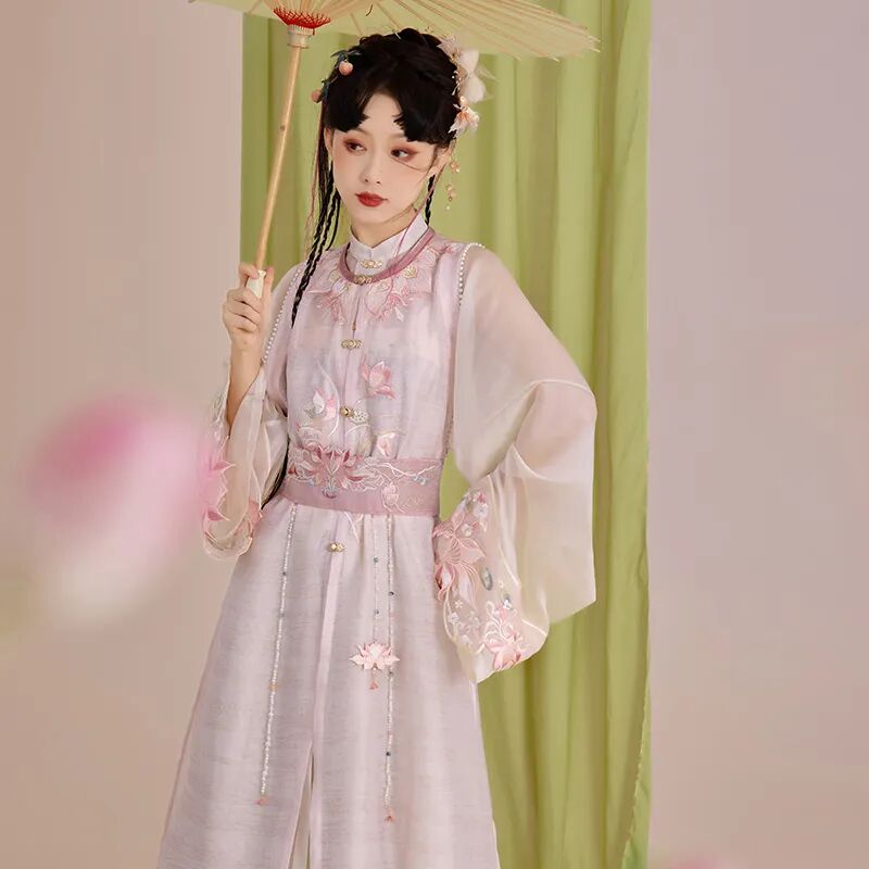 七月夕是一个年轻的汉服品牌,品牌从消费定位上侧重于年轻消费者,“希望能让更多Z世代人群感受到汉服的魅力和传统文化的精髓。”七月夕深谙传统汉服穿着方式和步骤的繁复,所以在设计中着重体现“轻”的概念,“轻”汉服从减轻穿搭负担下手,增加舒适感,消费者可以将成套汉服拆成单品来搭配时装。