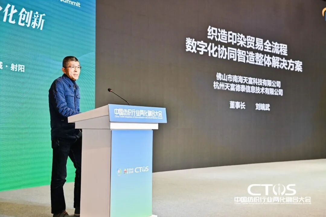 佛山市南海天富科技有限公司董事长兼总经理刘端武以《织造印染贸易全流程数字化协同智造整体解决方案》为题,结合企业发展实际进行了分享。他介绍,针对印染面料贸易、织造研发、染色加工等环节存在的行业痛点,公司打造了织染贸全流程数字化协同平台等,以柔性供应链的“智造”系统,有效实现了企业的敏捷、柔性、精益生产,做到了织造智造、印染智造、贸易智联。其中,织染贸互联网云平台,采用“平台+APPs”应用模式,统一数据平台和APP应用平台,有效解决了传统烟囱式垂直应用带来的信息孤岛和数据融合问题。