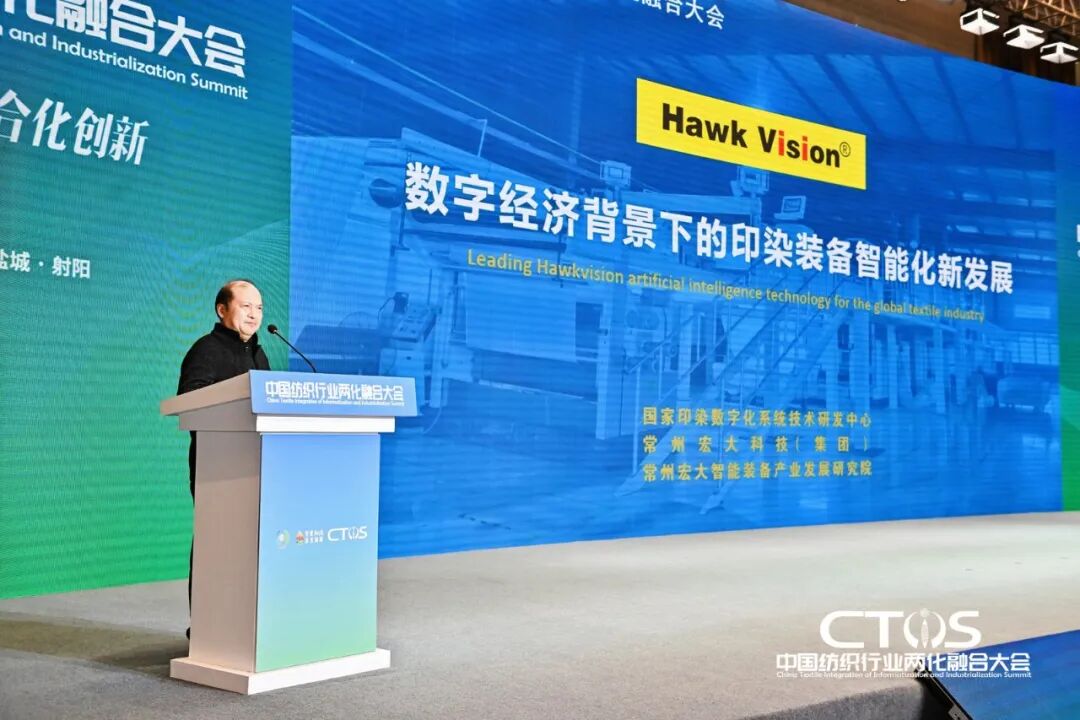 常州宏大智慧科技有限公司董事长顾仁带来了《数字经济背景下的印染装备智能化新发展》的分享,他表明印染行业智能制造进入新的创新发展阶段,基于工业互联网、大数据、人工智能以及数字孪生技术的数字印染制造已经成为重要的发展方向。他通过对INSHK印染智慧系统的介绍,强调印染智能制造核心要素是工艺数字化、装备智能化和管理信息化。