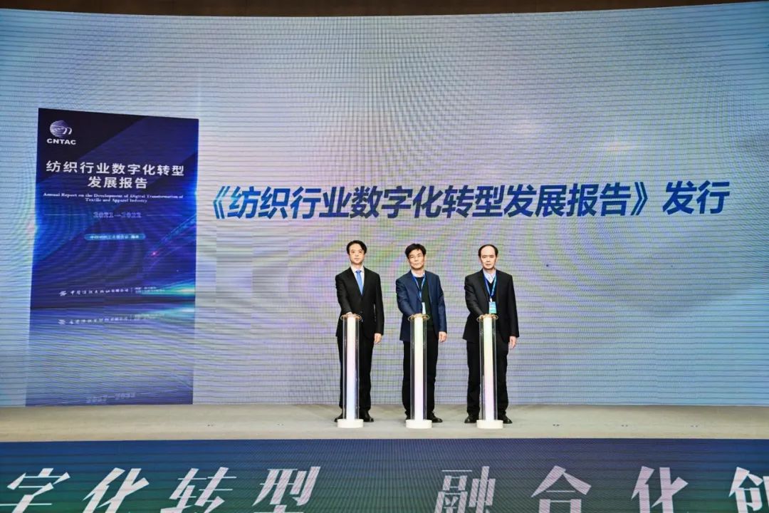 2022年,中国纺联信息化部牵头,组织中国纺联各专业协会齐心协力,发行出版了《纺织行业数字化转型发展报告(2021-2022)》,首次集中反映纺织工业及其子行业数字化转型发展现状、问题和需求。中国印染行业协会会长陈志华、中国服装协会常务副会长杨金纯、中国纺织机械协会副会长刘松共同启动报告的发行仪式。